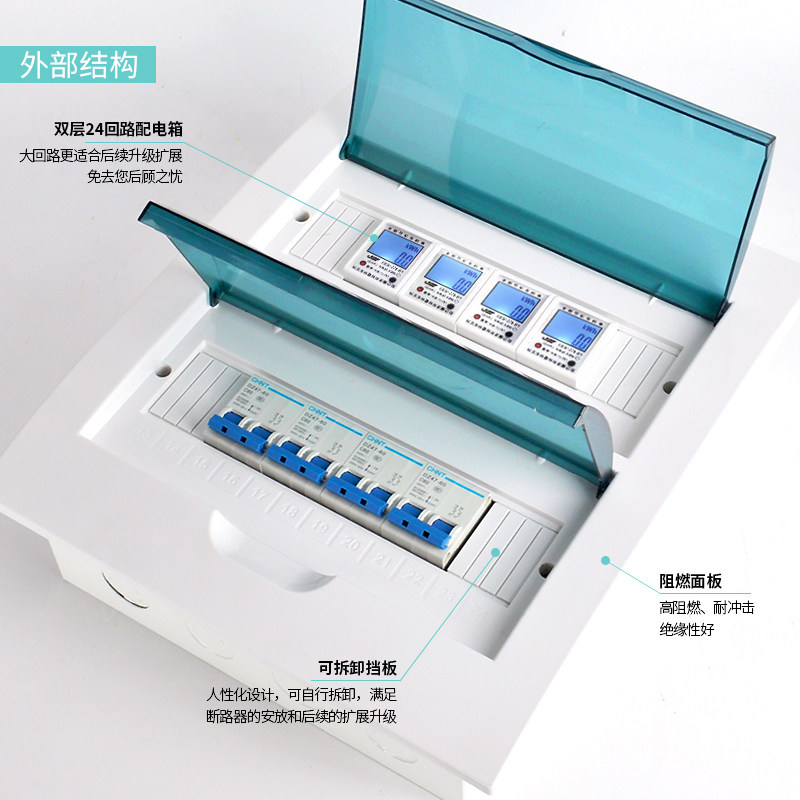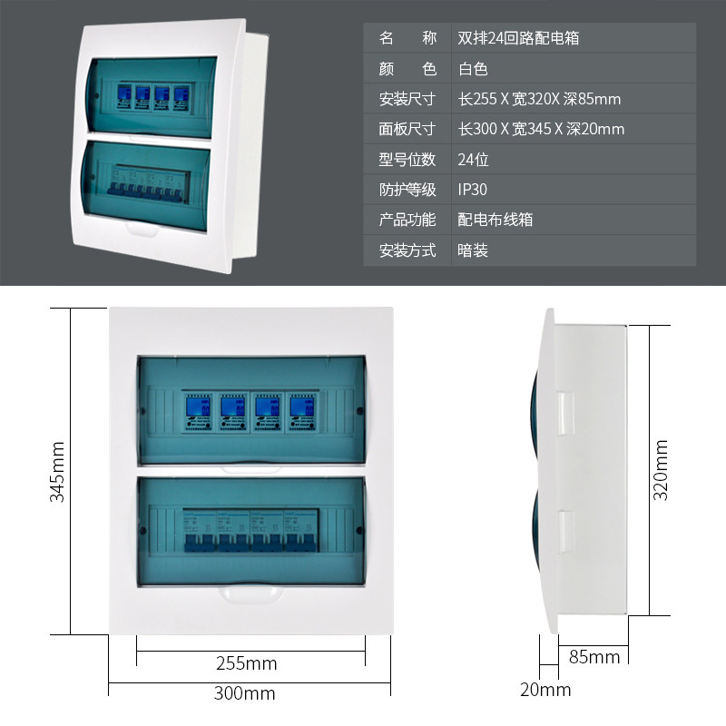 家用双排24/30/36回路暗装配电箱空气开关布线箱PZ30强电箱电表箱