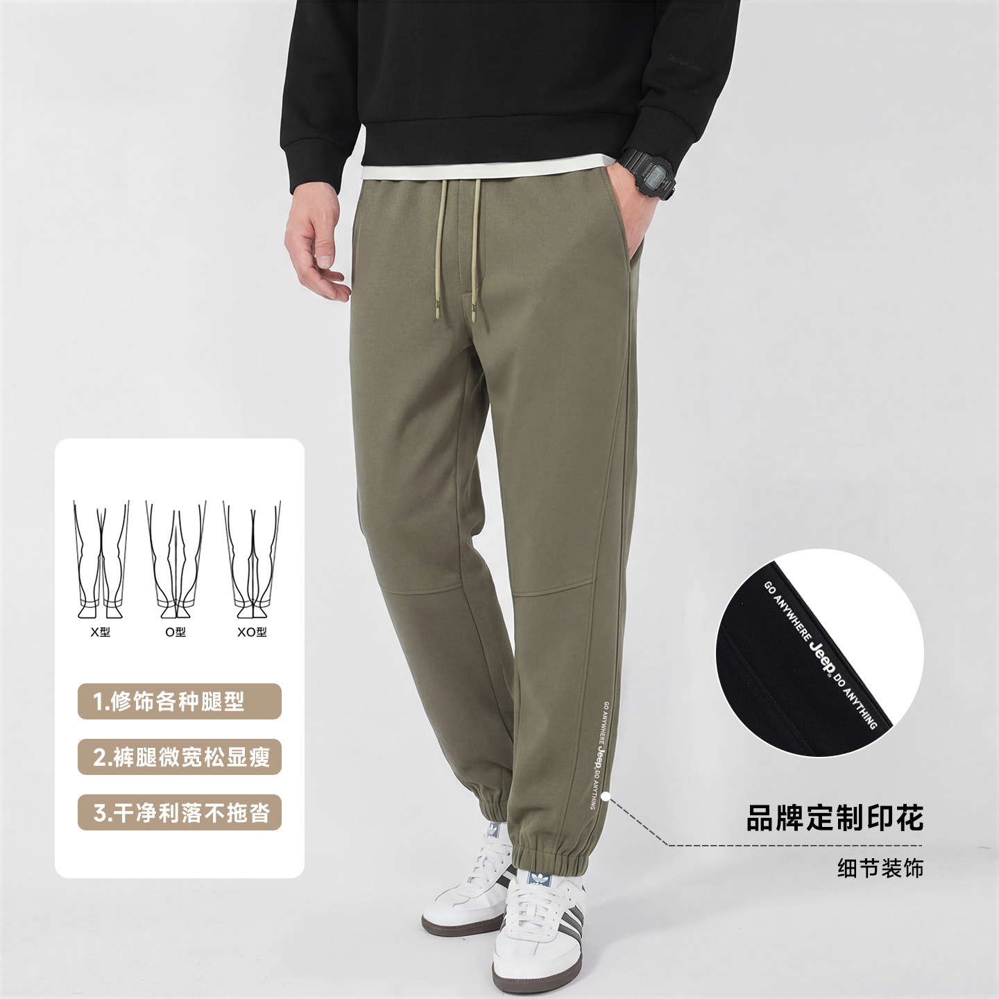 JEEP吉普卫裤男士2026春季新款下装简约百搭通勤束脚长裤子休闲裤