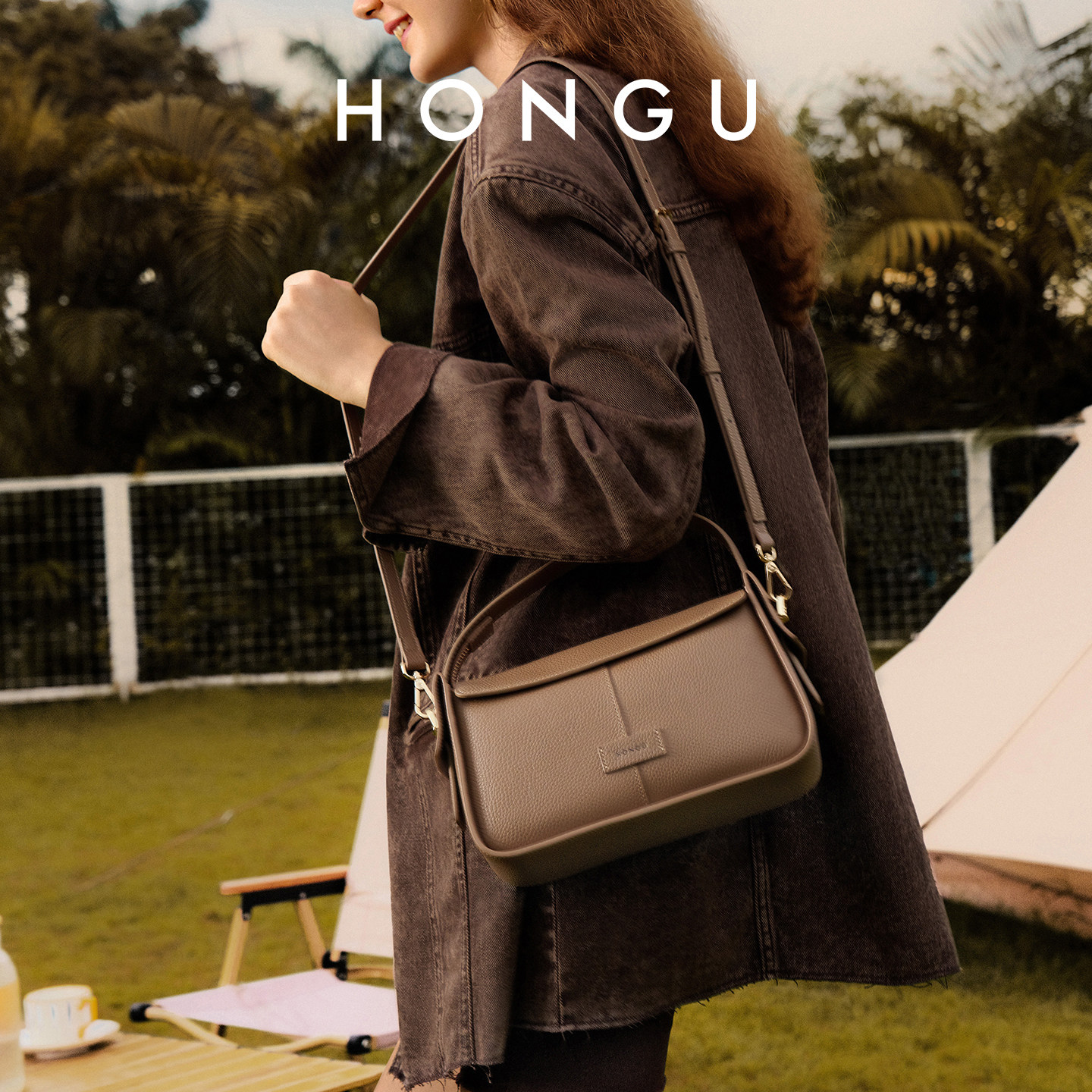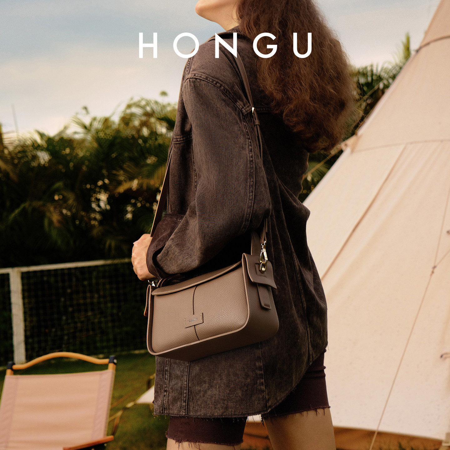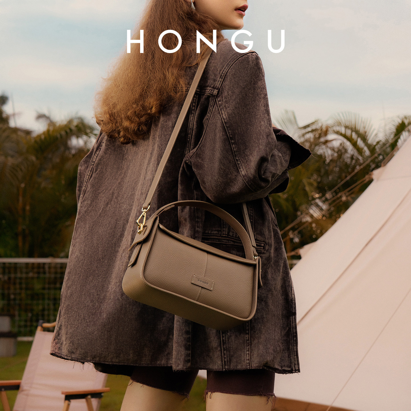 红谷包包女新款质感真皮单肩斜挎包通勤小众设计手提包女士包小包