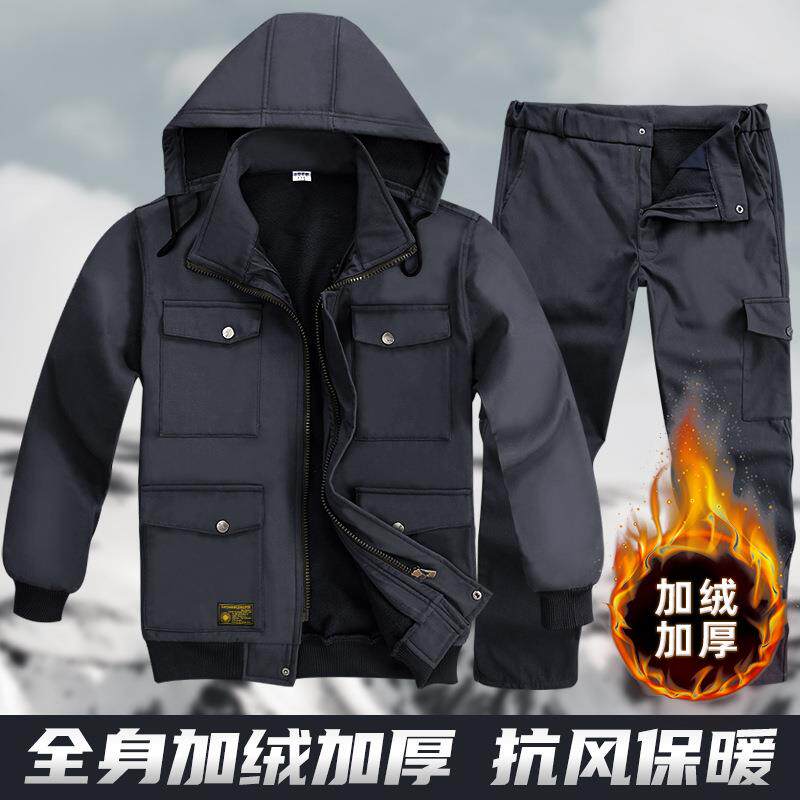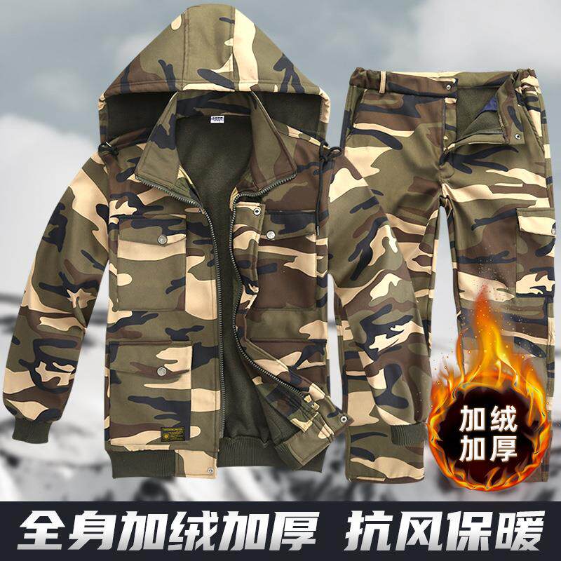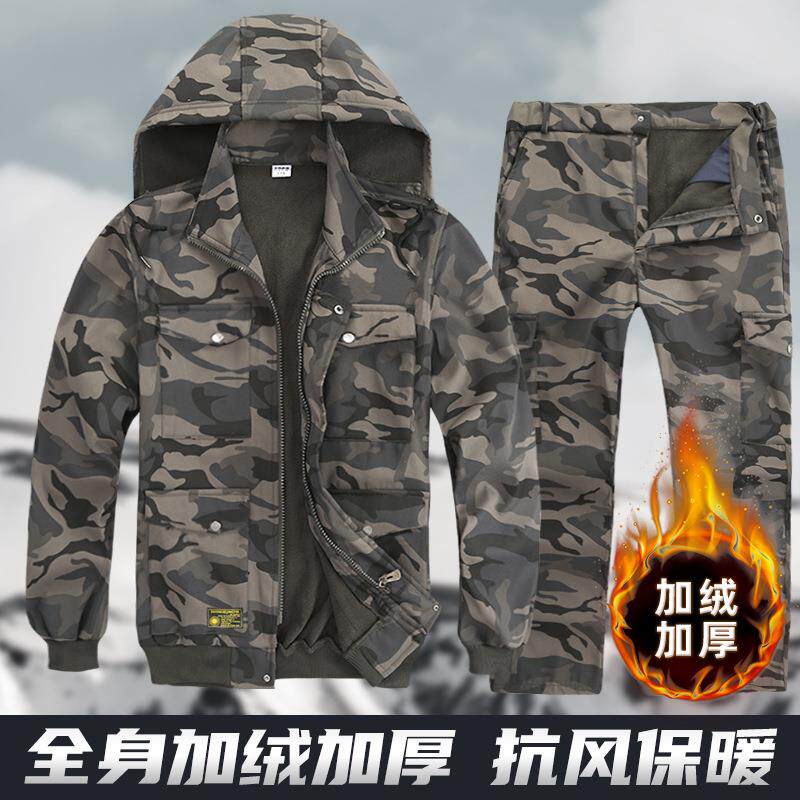 冬季加绒加厚工作服男款套装保暖迷彩劳保服工装棉服纯棉耐磨上衣