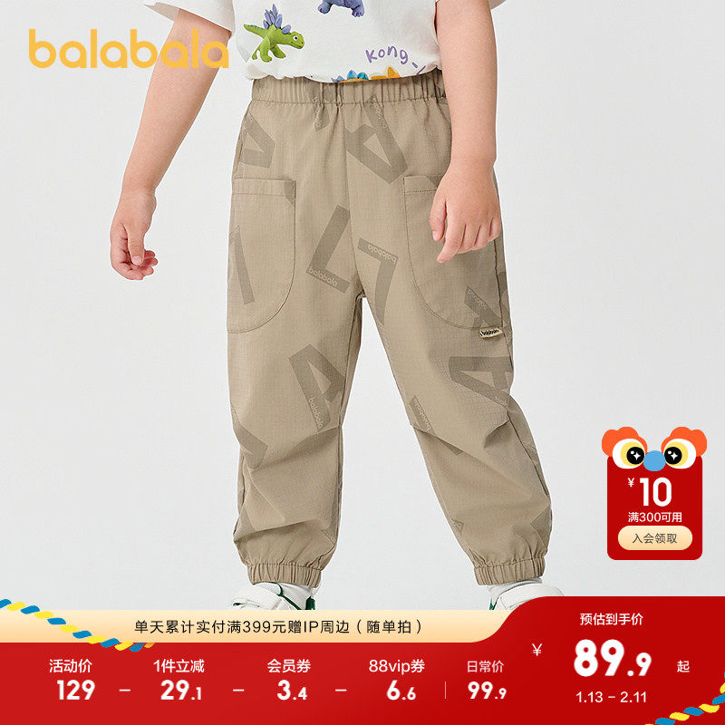 巴拉巴拉童装儿童裤子男童长裤2025新款夏装凉感抗菌防蚊裤宽松潮