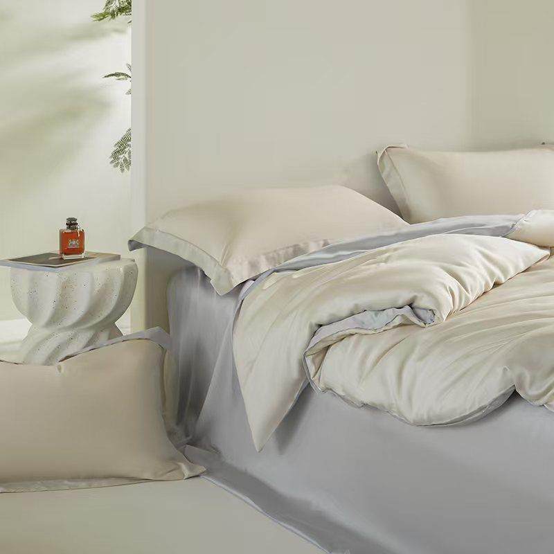 A类100s兰精天丝四件套夏季纯色冰丝床单被套轻奢裸睡双人套件
