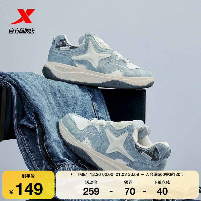 特步STAR-X丹宁风面包鞋|冬季新款情侣休闲鞋女板鞋男款运动鞋子