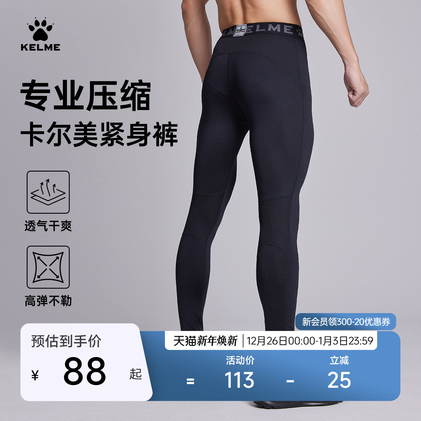 KELME卡尔美紧身裤男秋冬篮球足球拼接健身速干打底加绒运动长裤