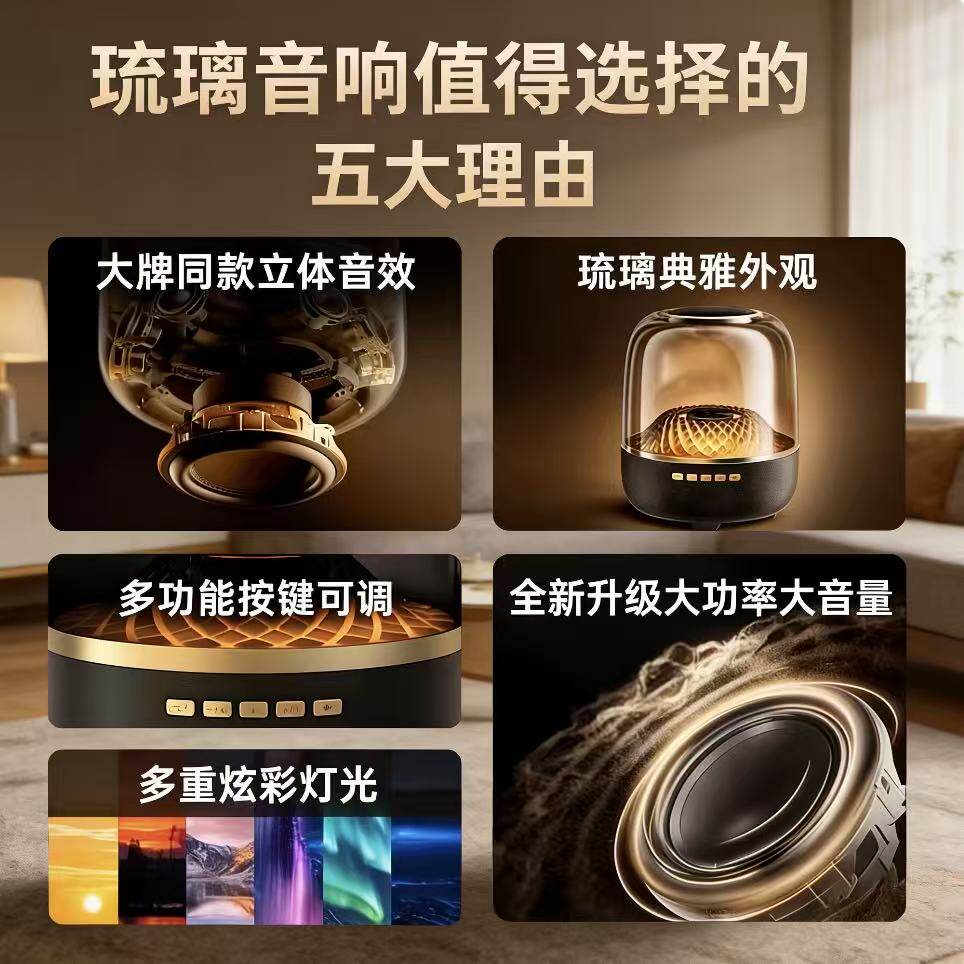 透明琉璃无线蓝牙音响家用插卡桌面重低音炮多功能炫彩氛围灯高音