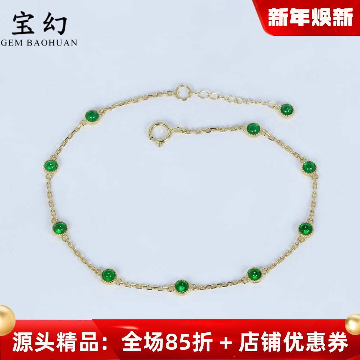 满天星18K黄金VVG斯瓦特天然素面祖母绿满圈手链 糖豆宝石彩金女