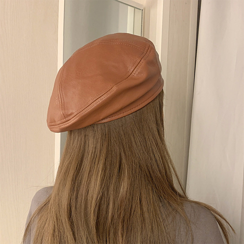 帽子女韩版潮百搭复古PU皮质网红款贝雷帽八角春夏季英伦画家帽