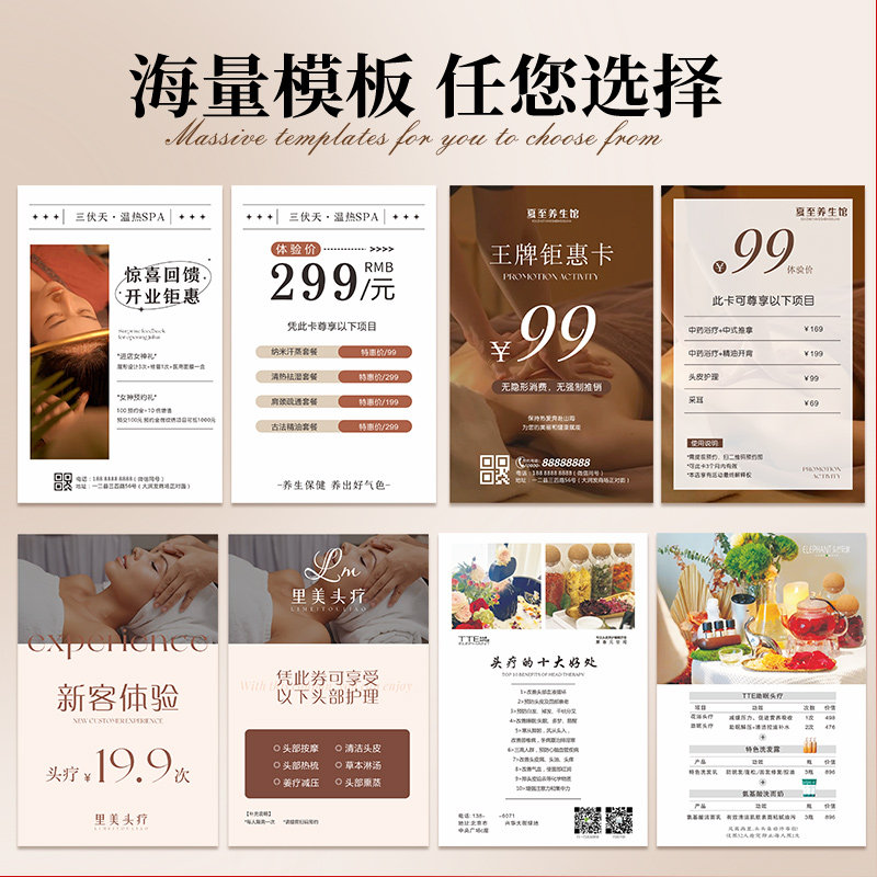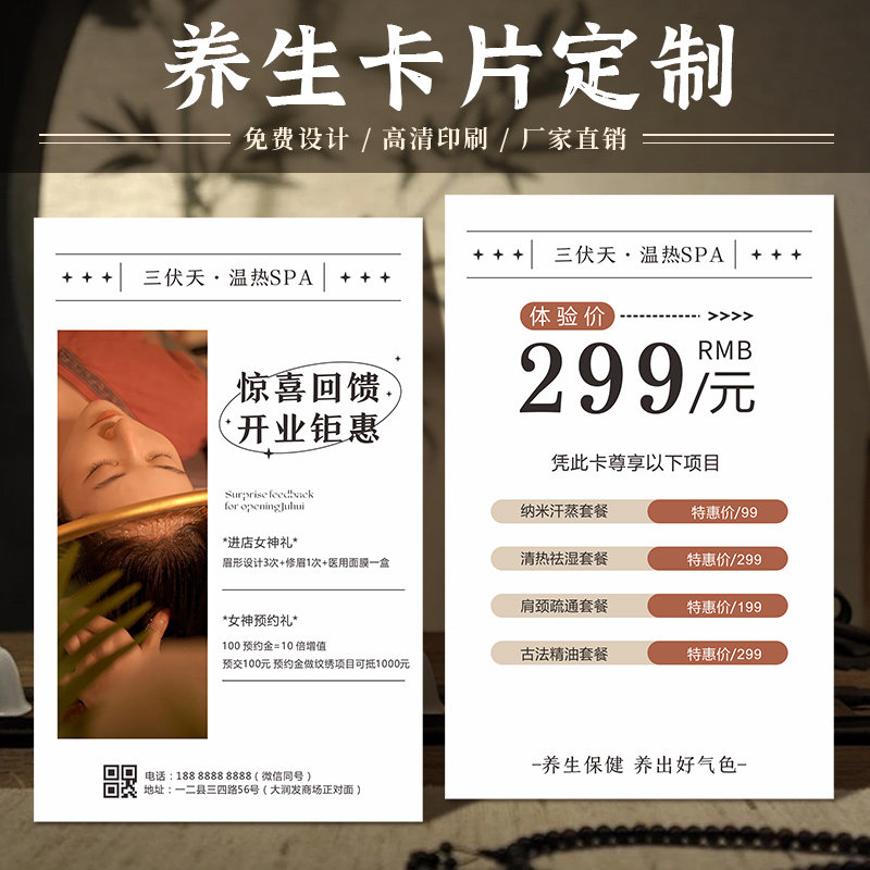 美容养生馆卡片定制中医针灸推拿汗蒸头疗护理美业新店开业拓客卡体验卡设计logo广告宣传单护肤卡项目介绍卡
