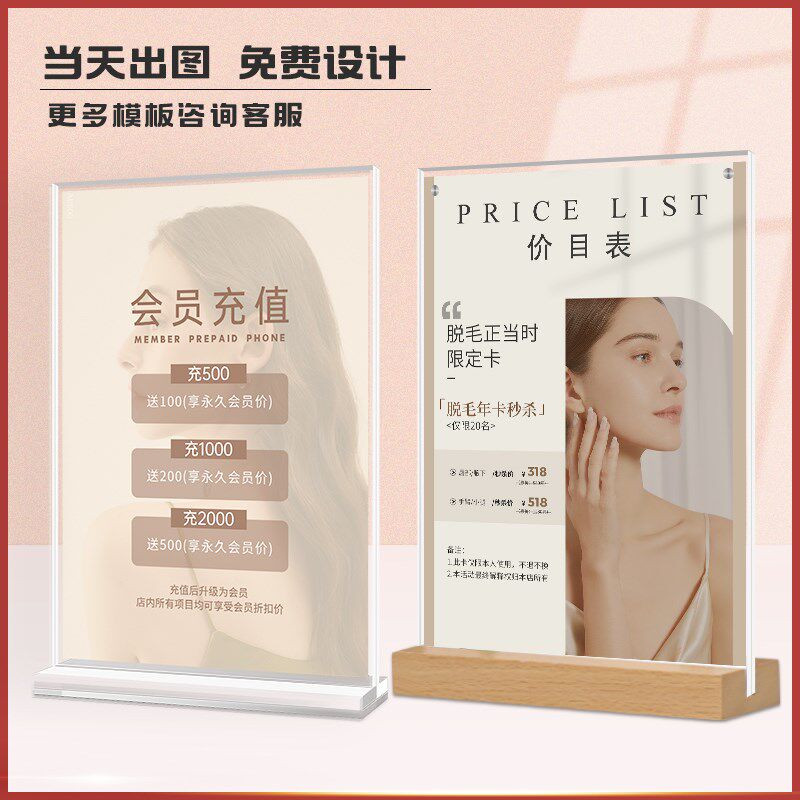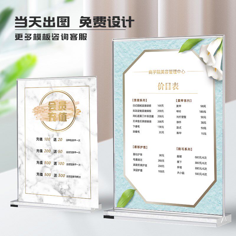 美容院价目表定制设计美发理发店美甲美睫K开业充值台卡桌牌展示