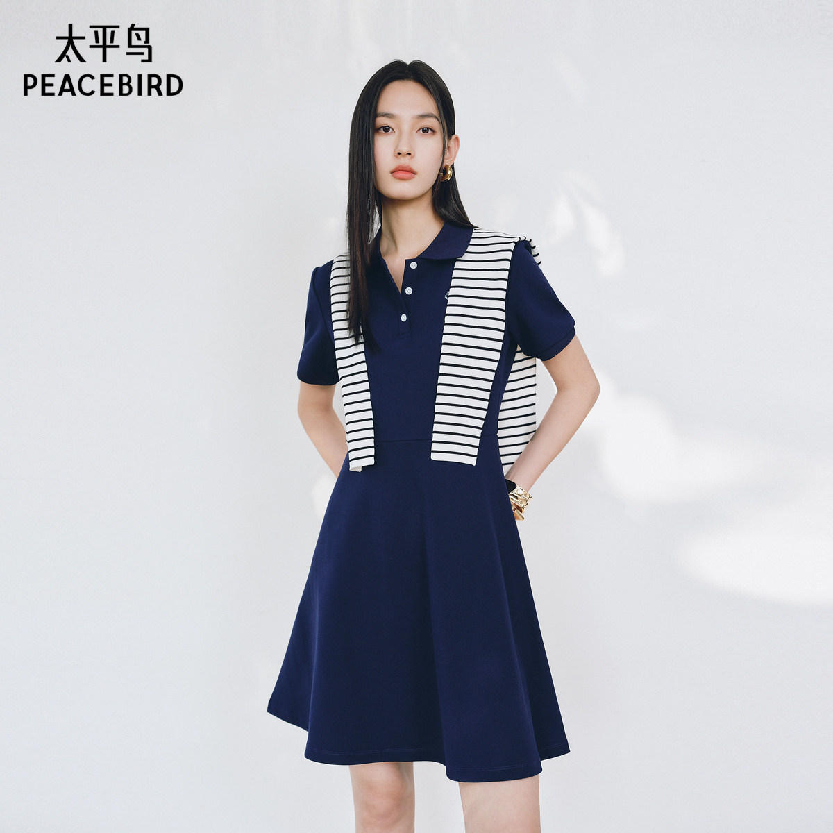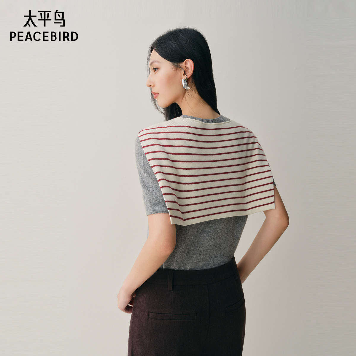 太平鸟女装条纹针织披肩2025春夏款搭配连衣裙搭肩时髦