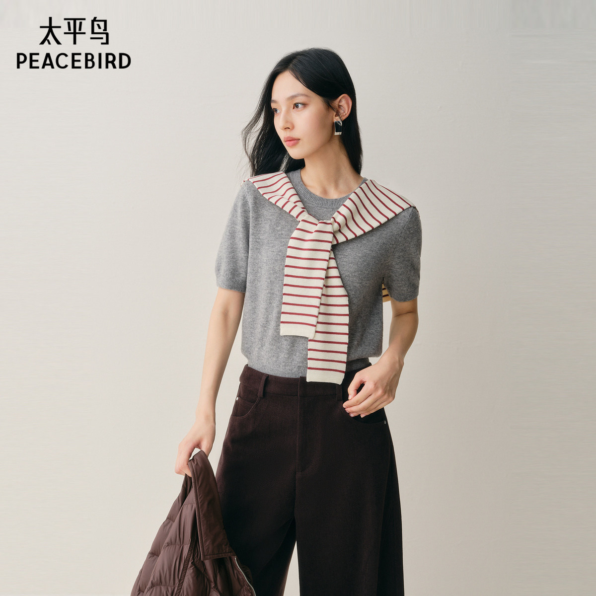 造型必备经典条纹披肩,增加知识分子时髦感