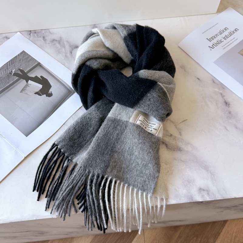 黑白格子纯羊毛围巾男女情侣保暖围脖学生披肩送礼物盒冬季实用