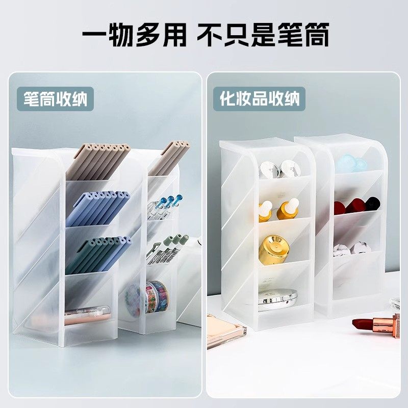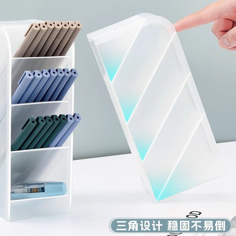 笔筒斜插式收纳盒架创意时尚学生桌面摆件简约时尚透明格笔筒文具