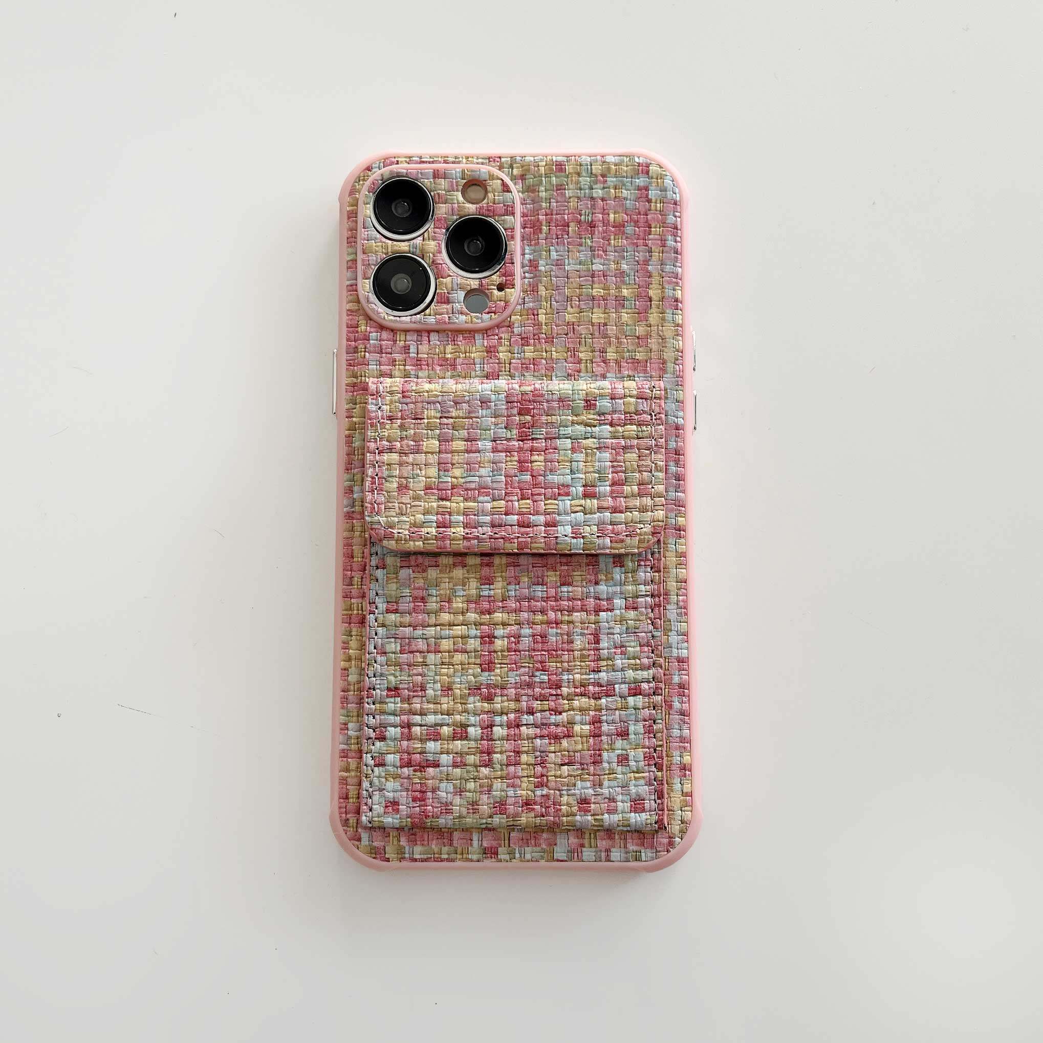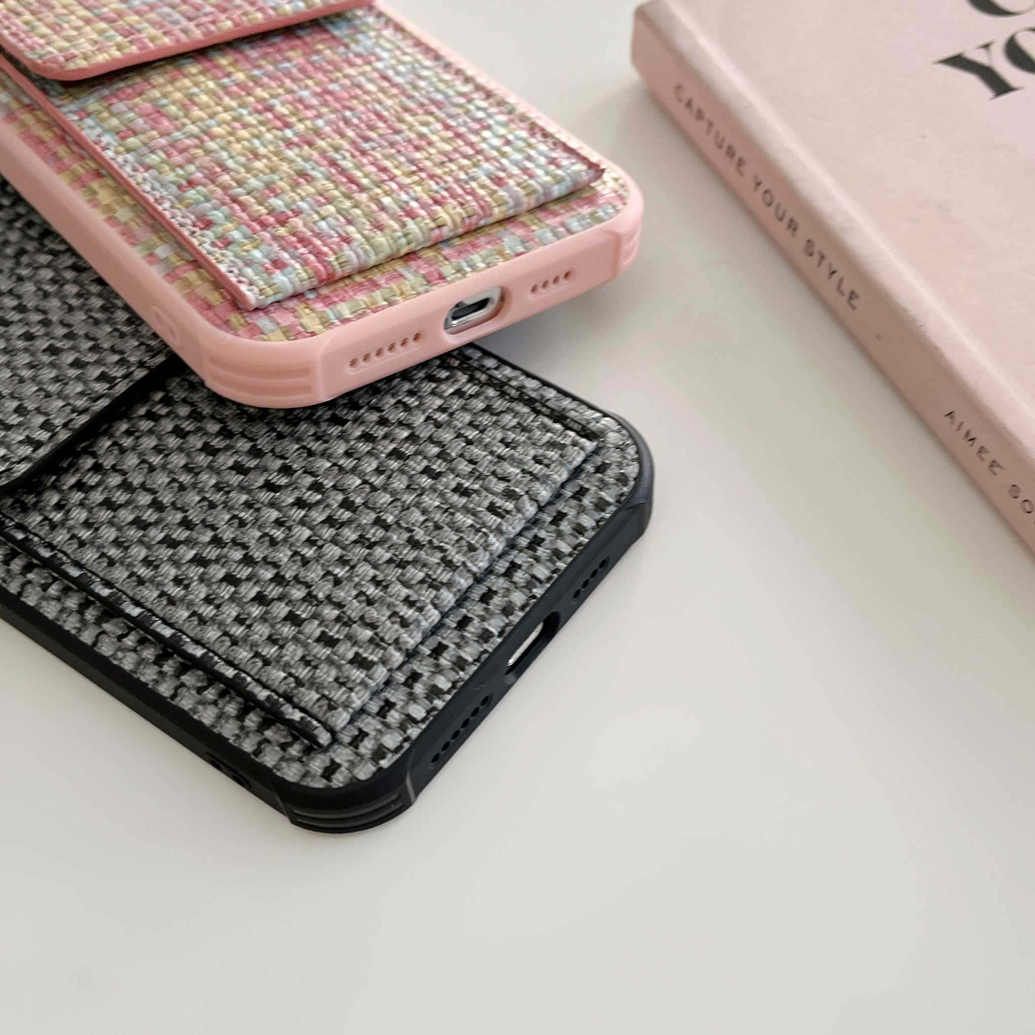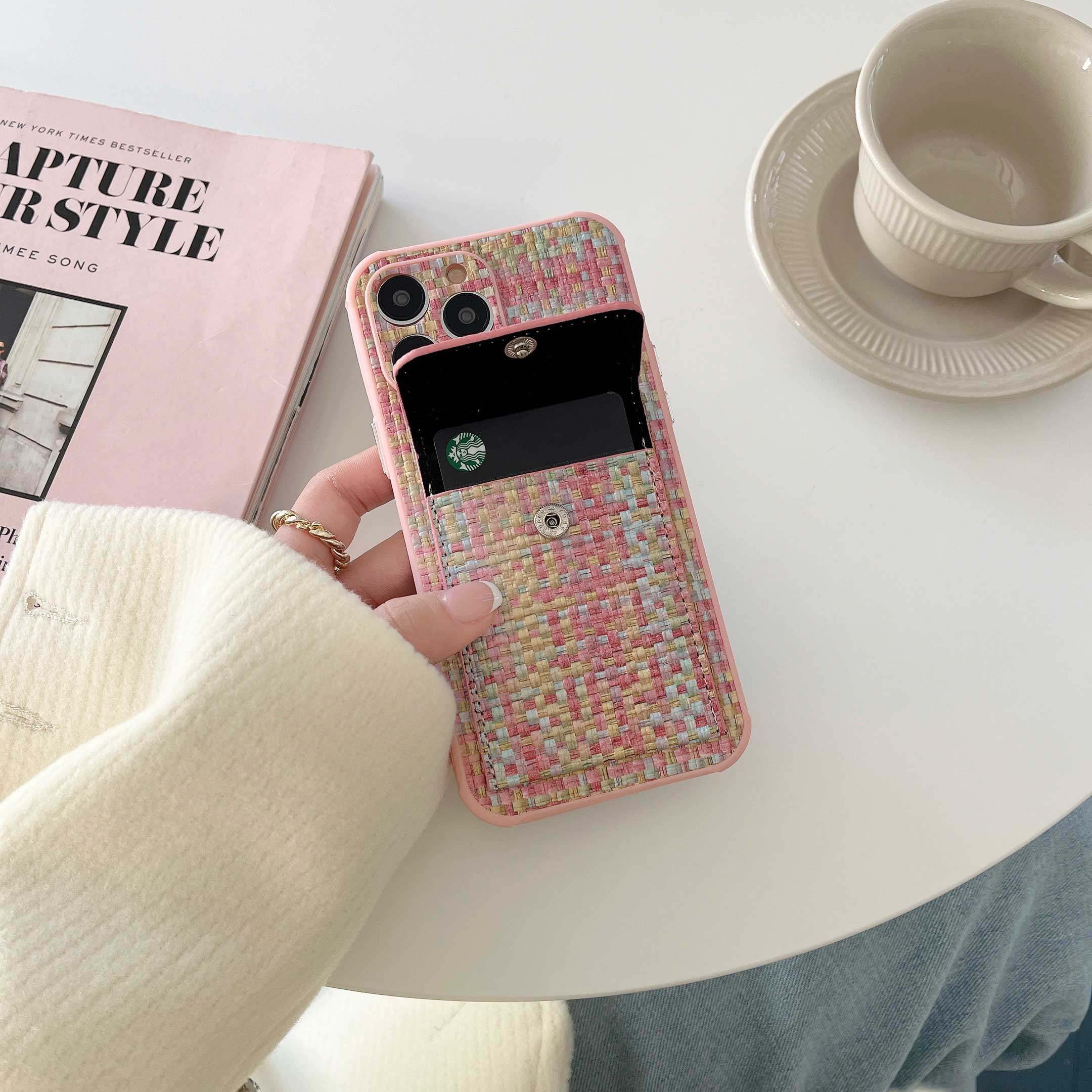 欧美奢华小香风编织纹适用苹果16promax卡包插卡手机壳新款iphone15pro保护套女14高级感13promax全包12防摔x