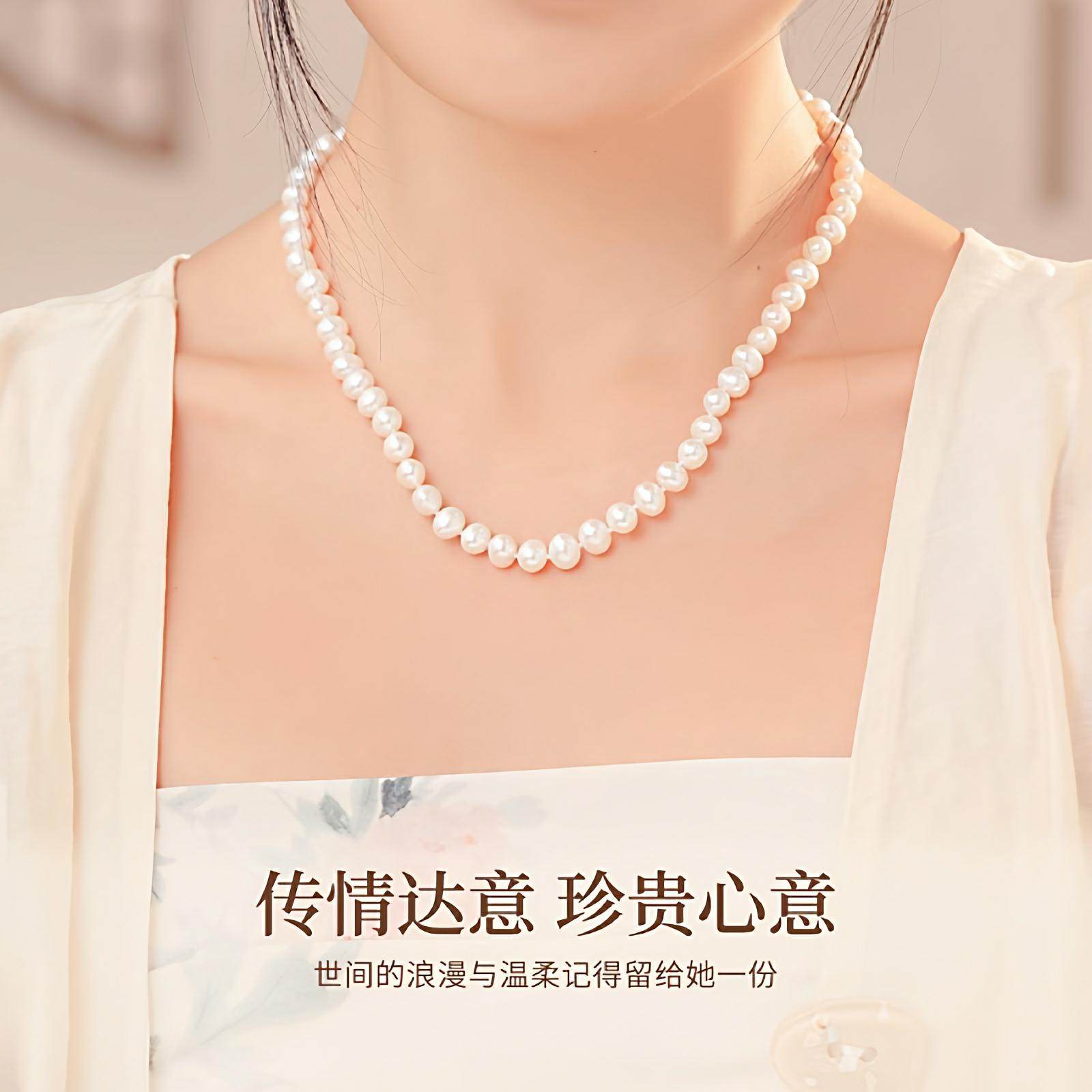 梵宝雅阁诸暨淡水珍珠项链女近圆强光全珠链高级感气质礼物质感