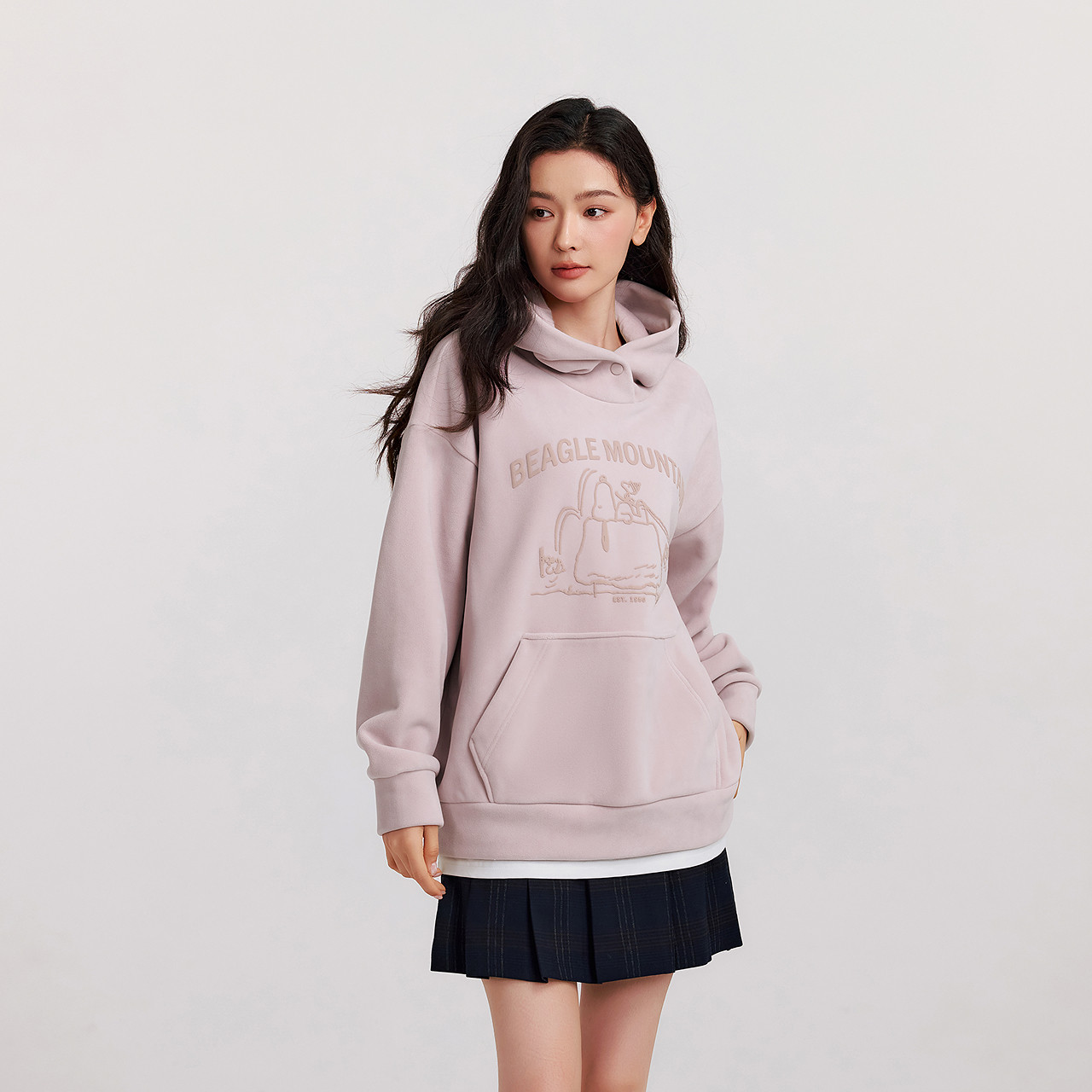 森马史努比系列卫衣女外套摇粒绒保暖冬宽松半拉链立领刺绣上衣