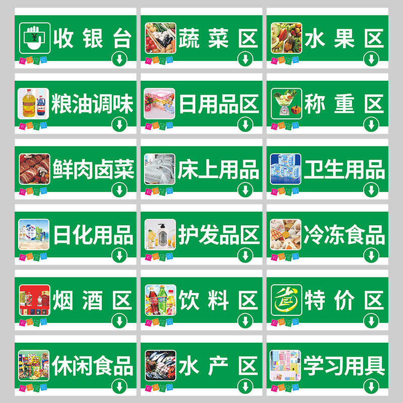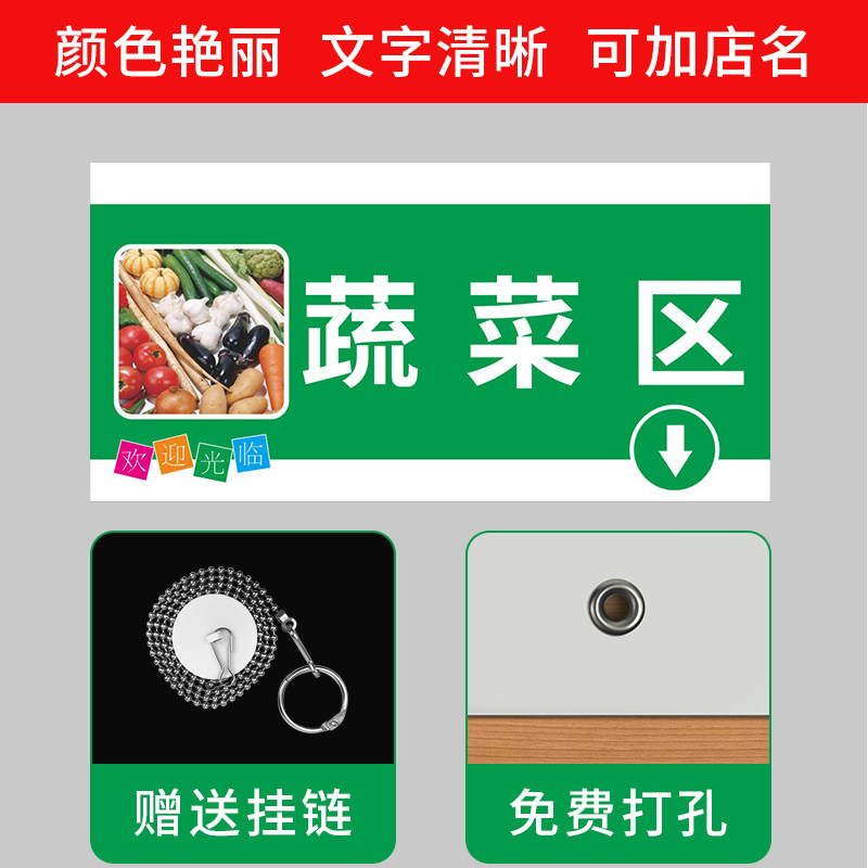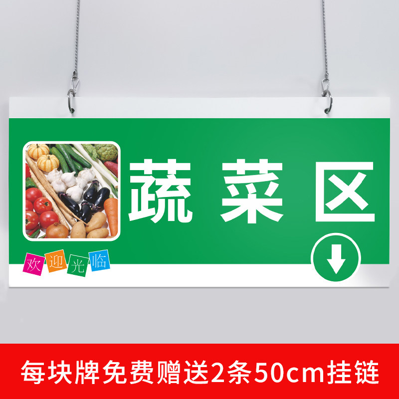 超市分区吊牌双面挂牌商场卖场便利店区域分类指示牌蔬菜水果区粮油调料日用品区收银台称重区标识牌定制