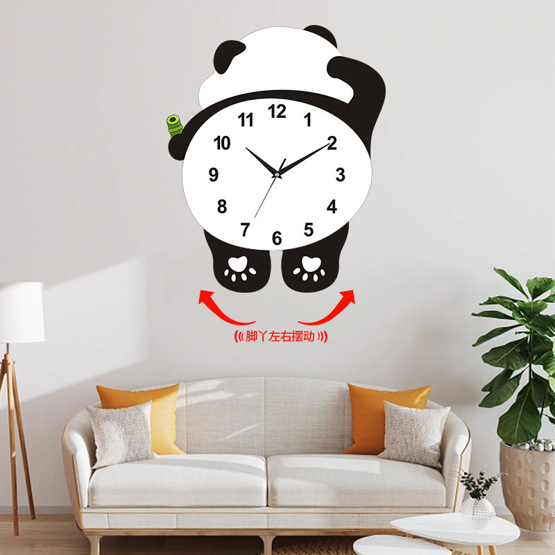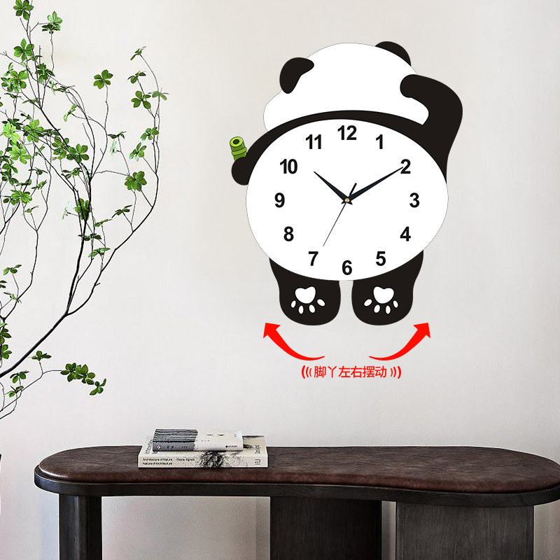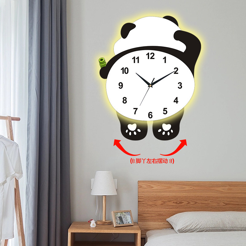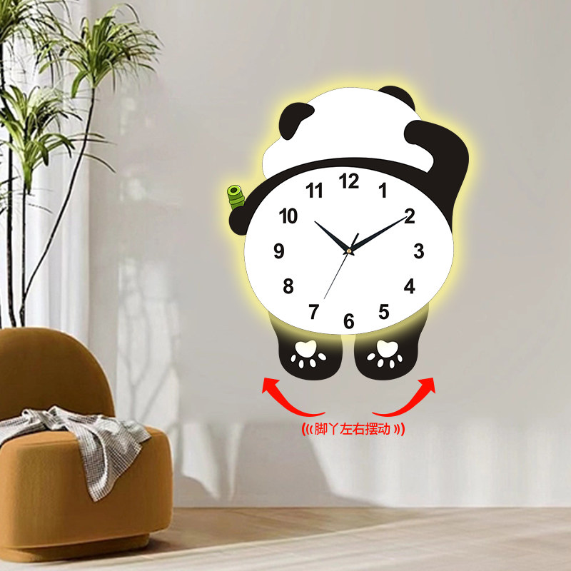 熊猫发光摇摆挂钟客厅装饰画时钟新简约现代餐厅沙发背景墙壁挂画