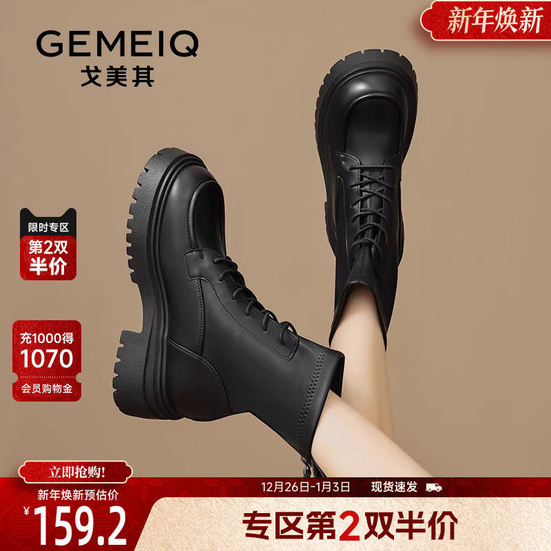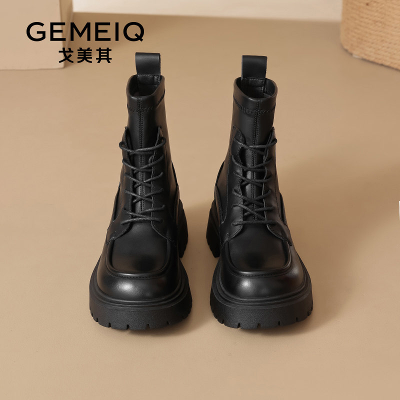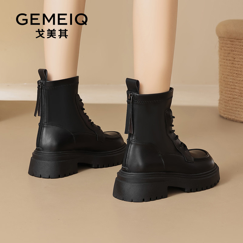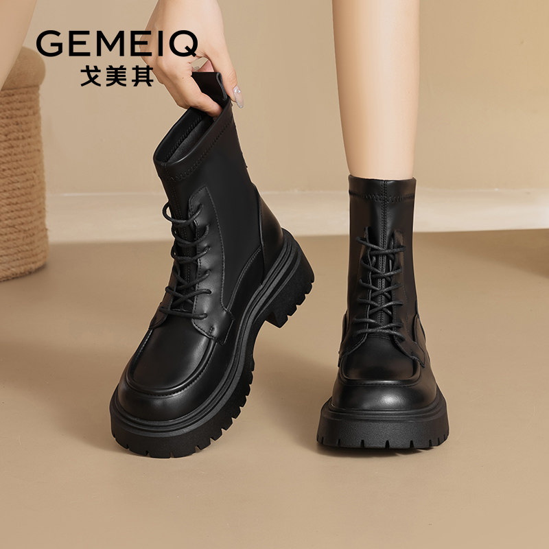 戈美其英伦风爆款马丁靴女款厚底舒适新款春秋炸街机车靴增高短靴