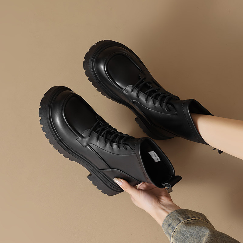 增高厚底复古女款2025新款小众方头松糕厚底jk短靴小个子马丁靴