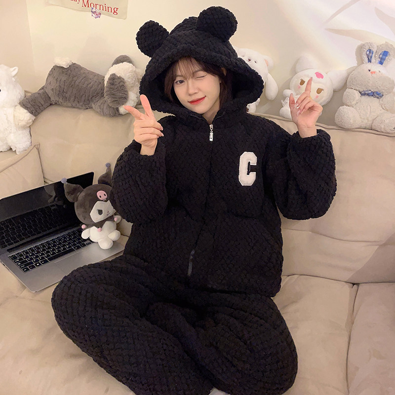 2025年冬款珊瑚绒睡衣女秋冬季加厚法兰绒加绒套装家居服春秋新款