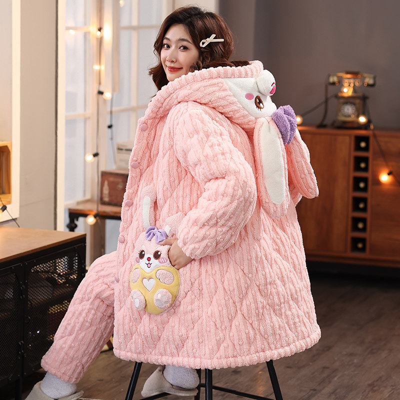 三层夹棉超厚睡衣女2025冬季新款珊瑚绒加厚加绒可外穿保暖家居服