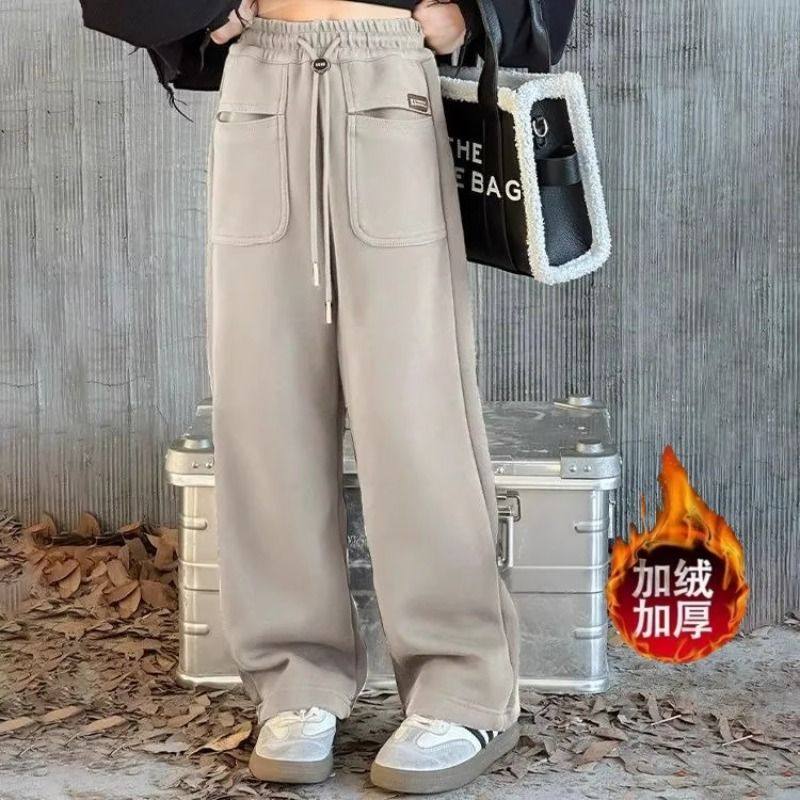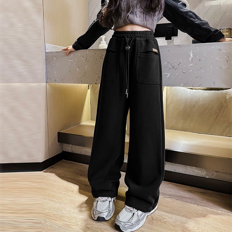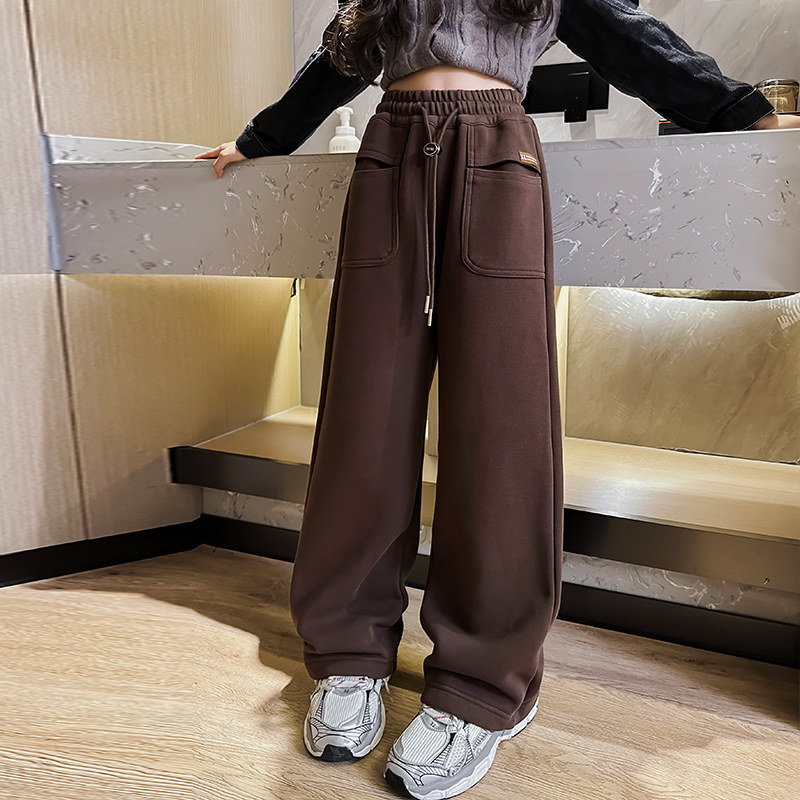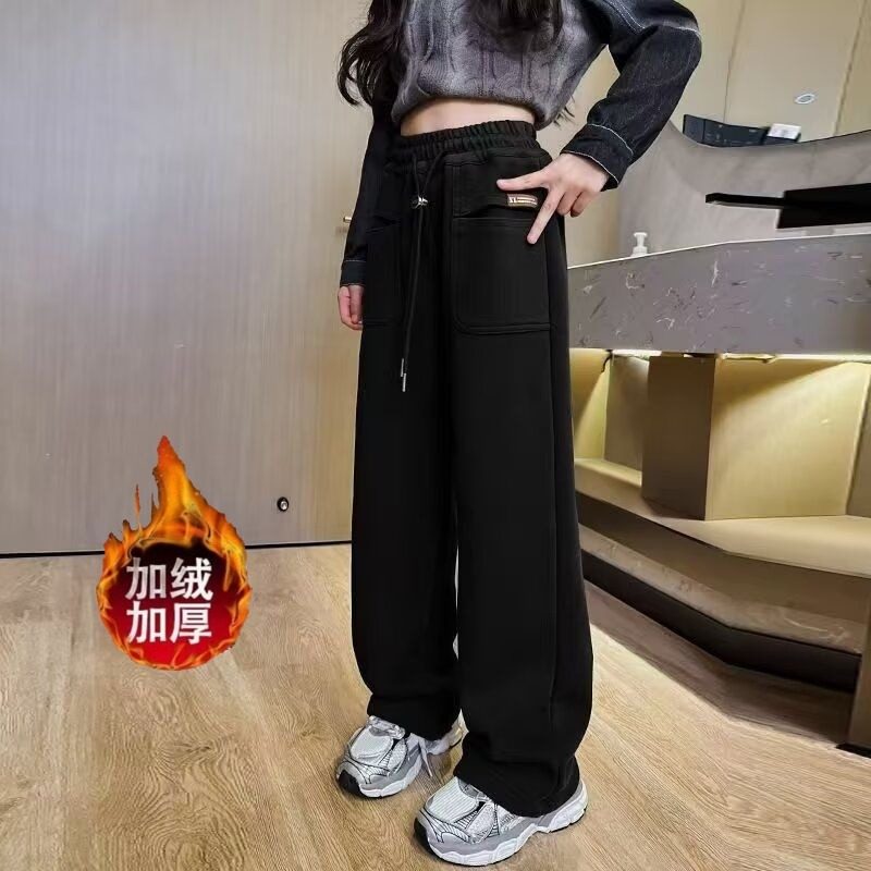 女童加绒裤子儿童阔腿裤秋冬款女宝秋季直筒裤潮范中大童女孩卫裤