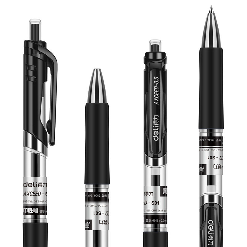 得力s01中性笔按动笔0.5mm黑红蓝色签字笔圆珠笔水笔漫威联名