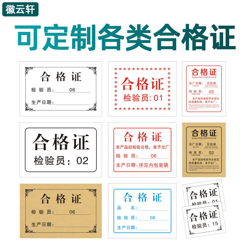 食品合格证标签定做出厂检验合格印刷普通双胶纸装箱复印纸质包邮 可定制不干胶牛皮纸标签红色产品出厂粮食