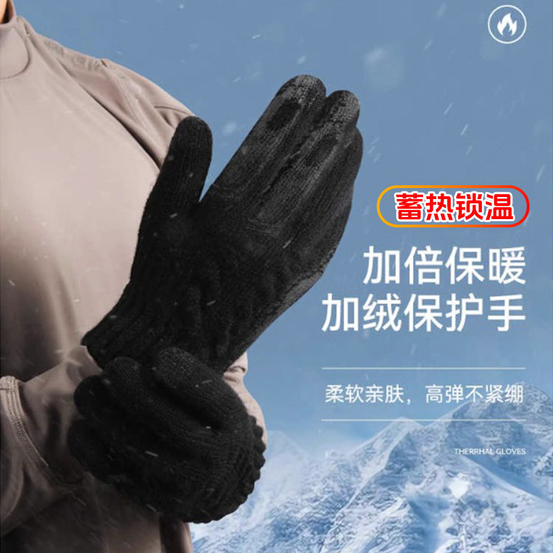 手套男冬季骑行电动车保暖户外防风防寒加绒加厚触屏开车针织毛线