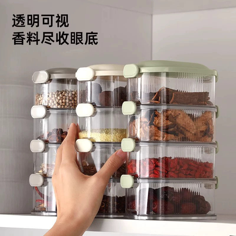 香料收纳盒家用厨房花椒大料储物盒佐料调料密封罐食品级分格盒