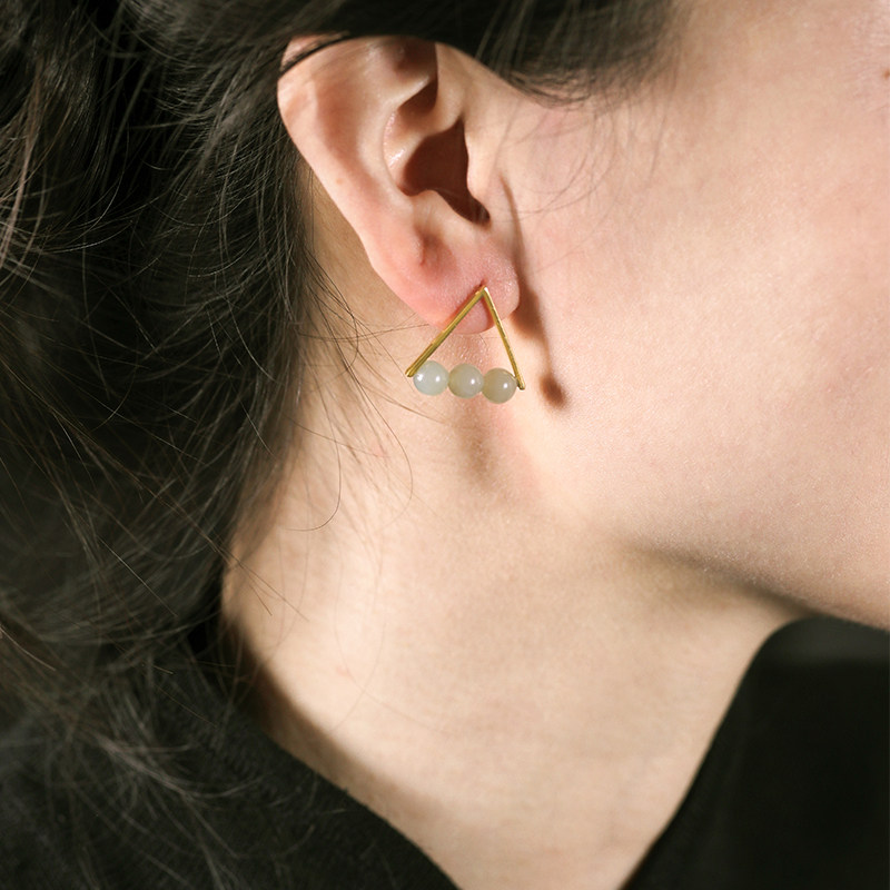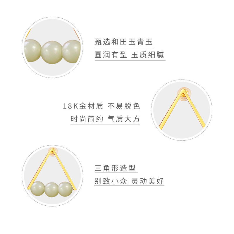 和合玉器和田玉青白玉三角耳饰黄金18K金玉珠耳环金镶玉白玉耳钉