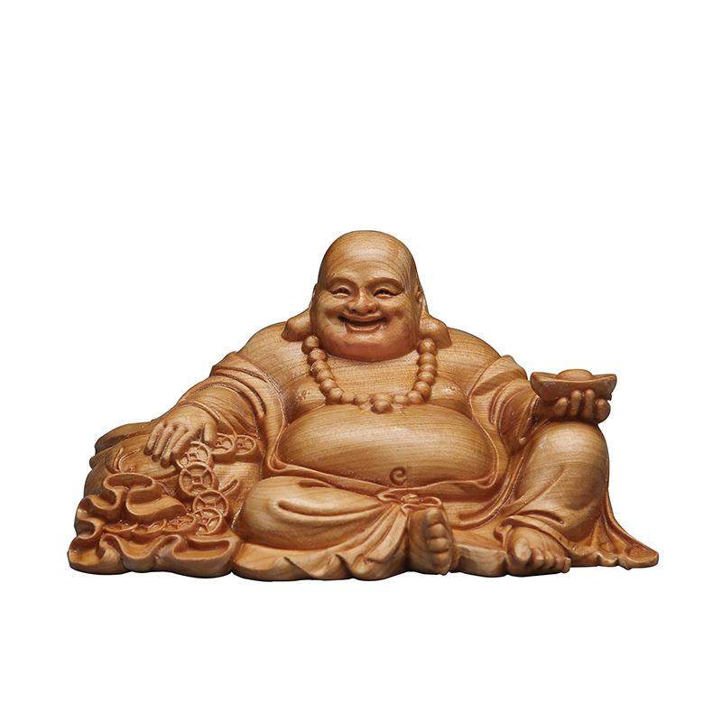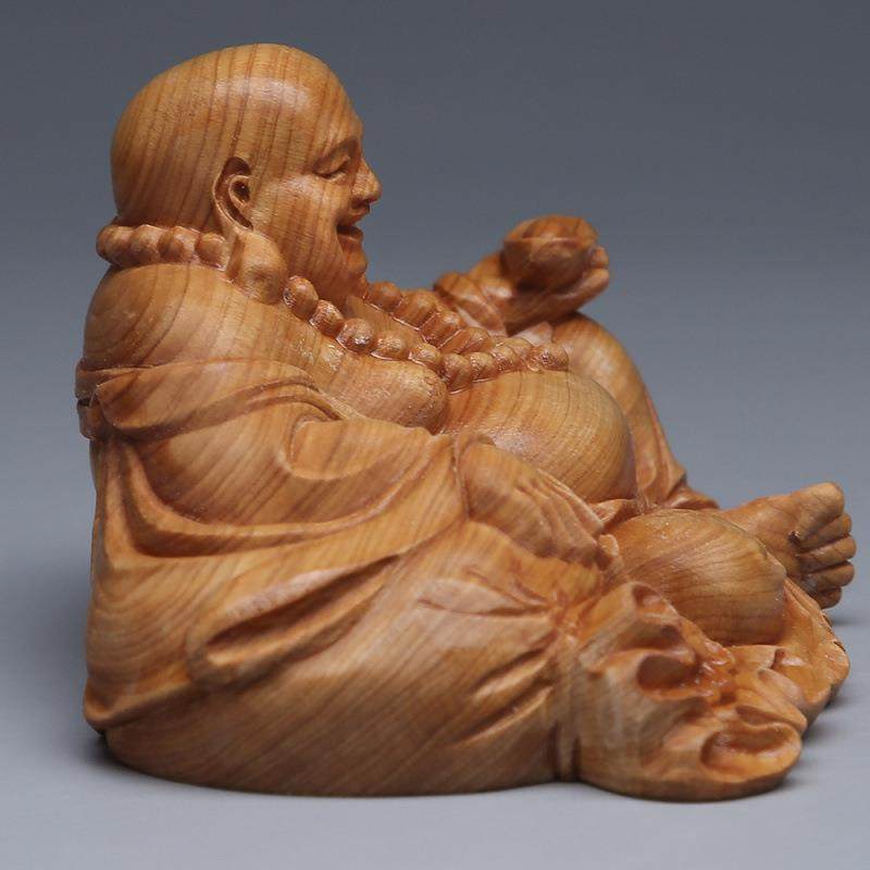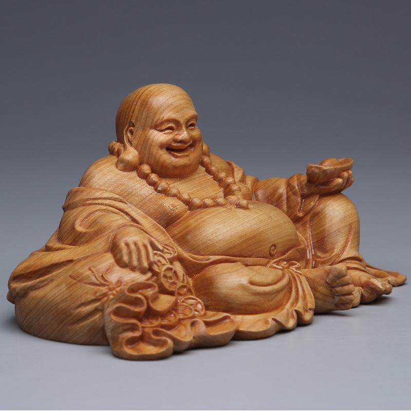 崖柏元宝弥勒木雕摆件 大肚文玩工艺品摆件开业送礼可