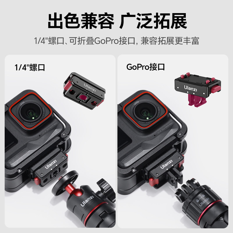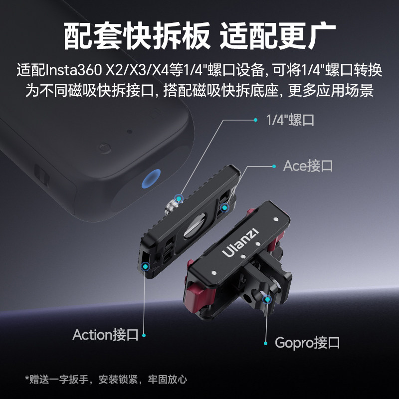 Ulanzi优篮子适用影石insta360 x5/x4磁吸快拆底座Ace Pro2两爪螺孔X3全景运动相机铝合金快装板三脚架配件