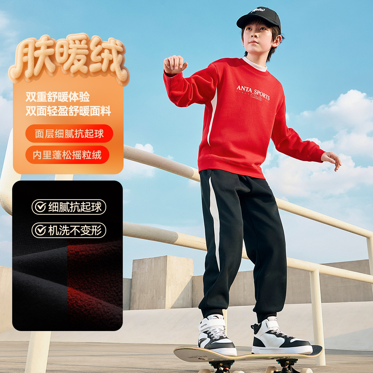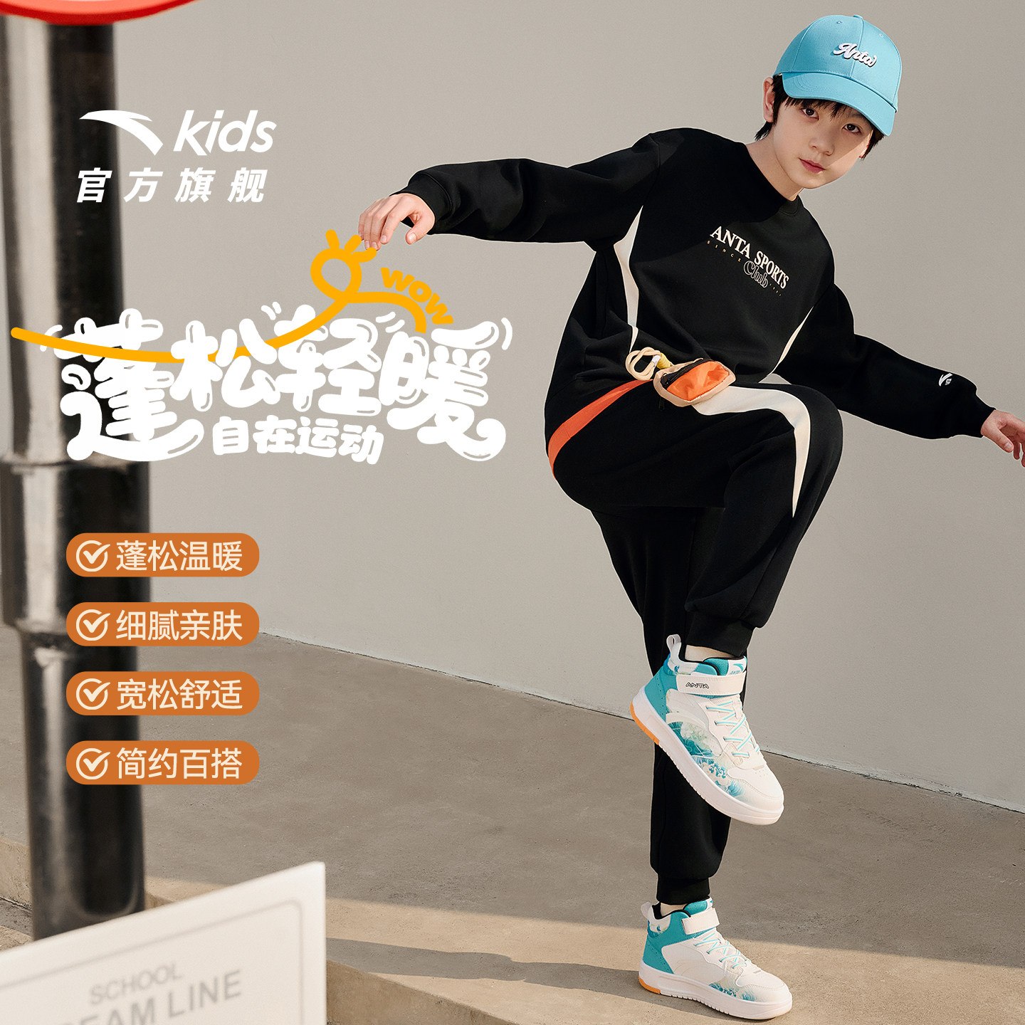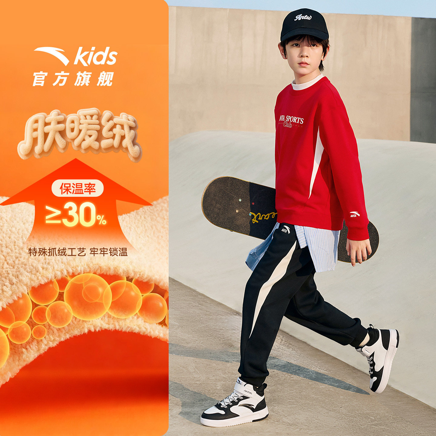 【马年红色新年】安踏儿童装男童套装加绒卫衣卫裤时尚两件套拜年