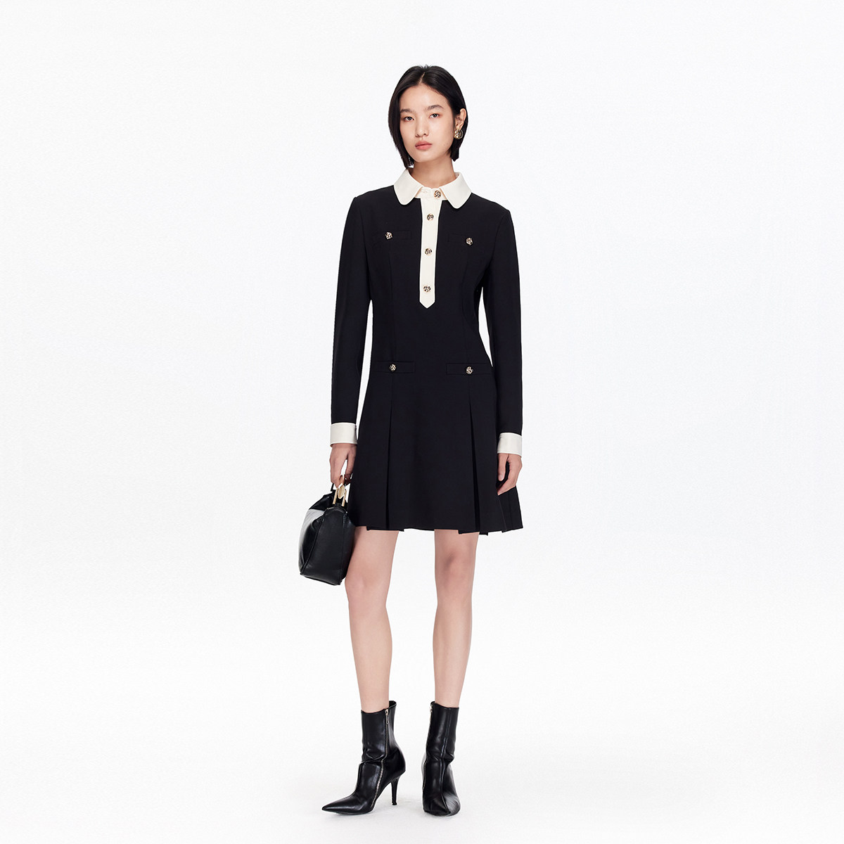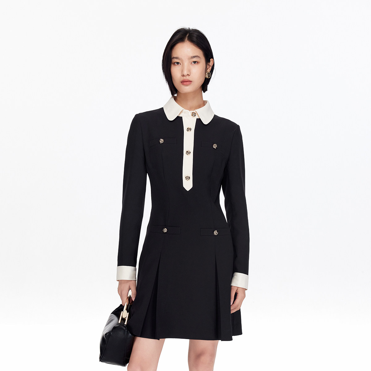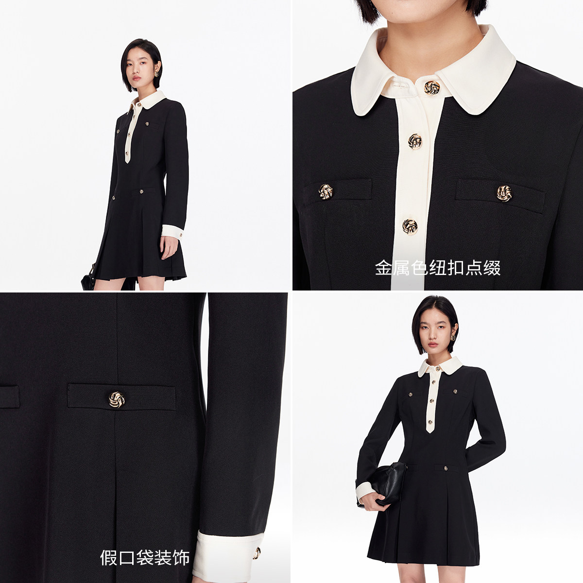 Vero Moda奥莱连衣裙女2025秋冬新款金属纽扣装饰撞色A字短裙裙子