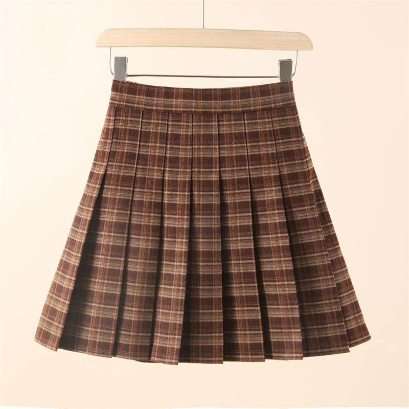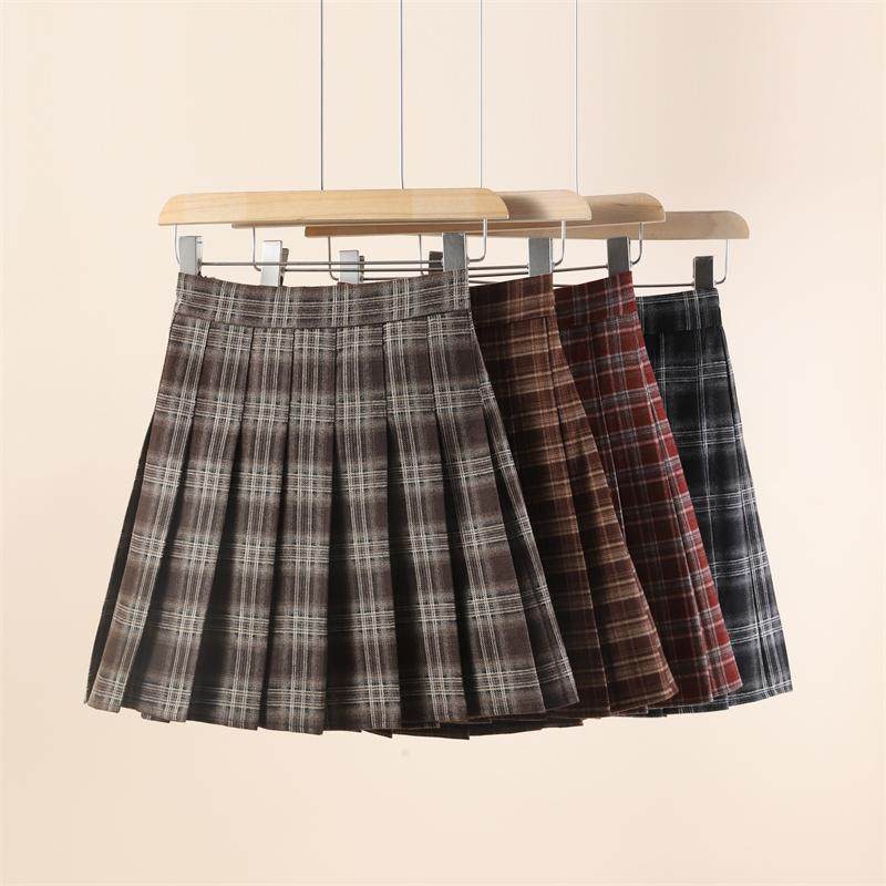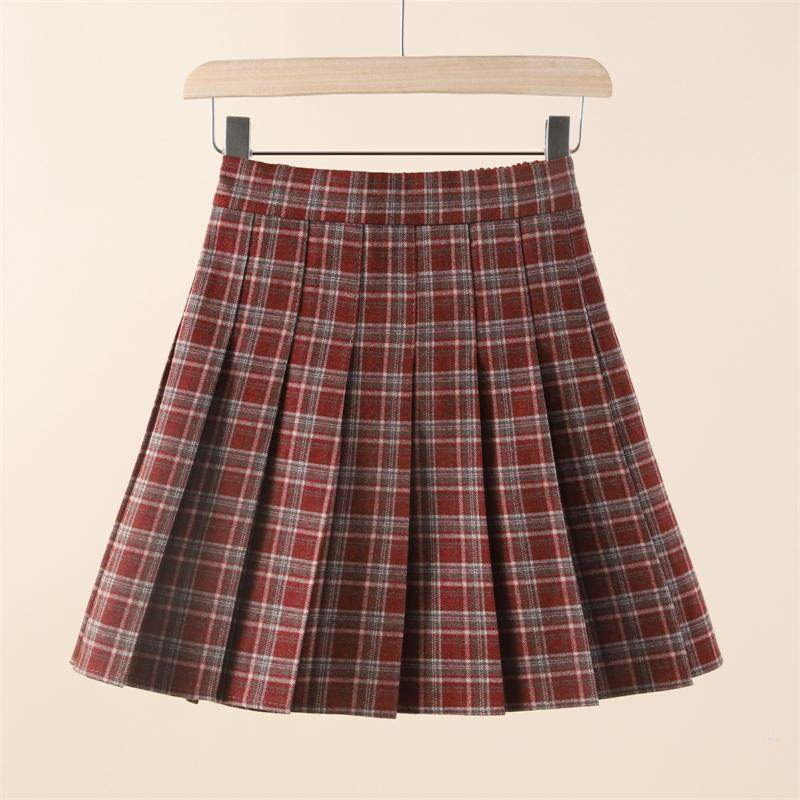 大码毛呢红色格子半身裙加厚百褶裙女秋冬学院风a字裙咖格纹短裙