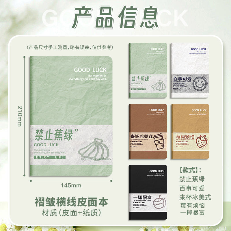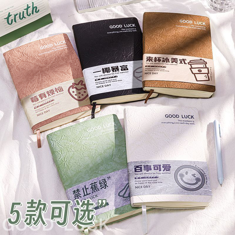 A5笔记本子2025年新款杜邦纹褶皱皮记事本高颜值简约学生超厚皮面带腰封日记本子小学初高中专用学习笔记本