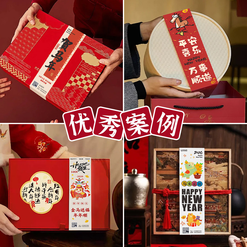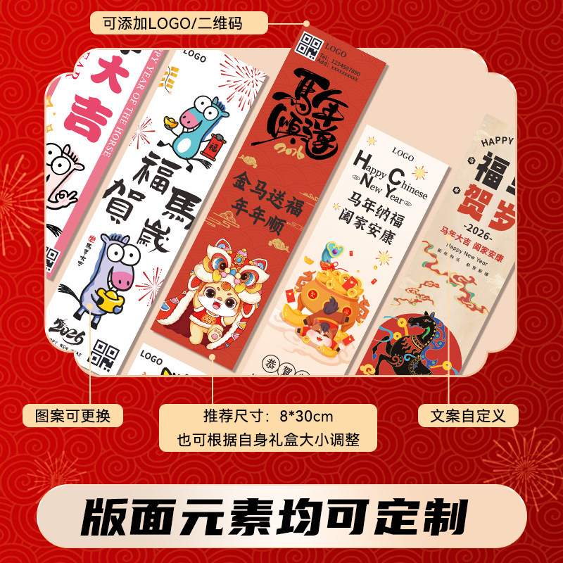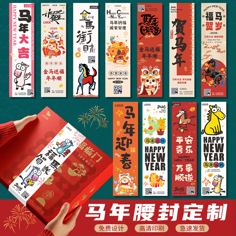 2026新年礼盒腰封定制春节年货礼盒围边封条设计公司节日伴手礼logo纸质卡套制作马年茶叶包装盒长条封套印刷