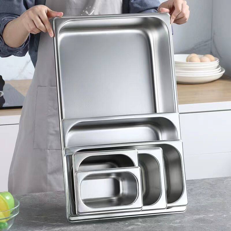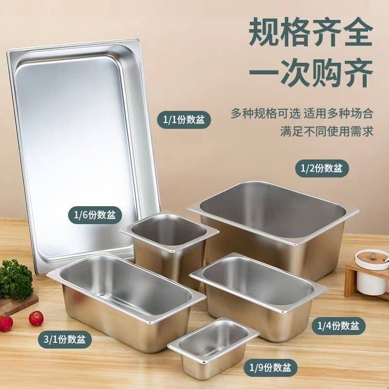 不锈钢份数盆自助餐盆餐带盖长方盒菜盆分数盆加热盆食品和面洗菜