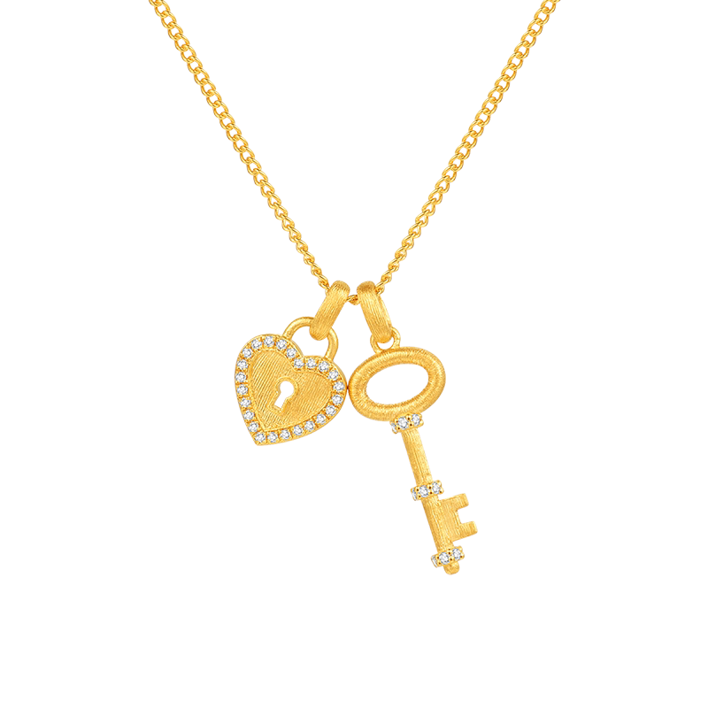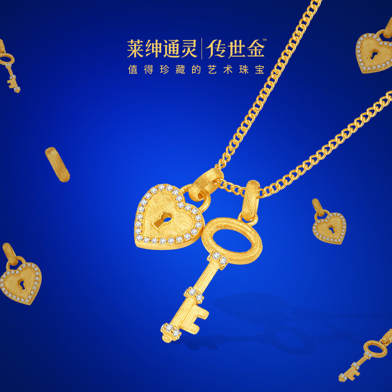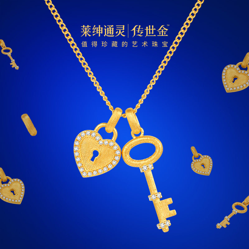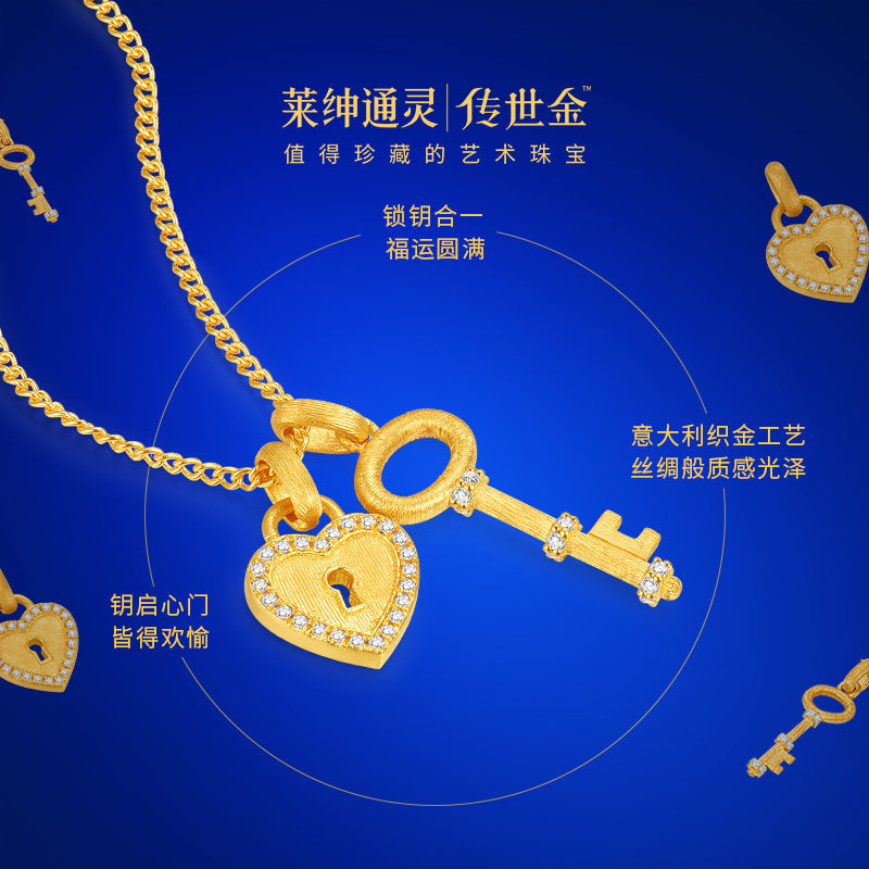 【商场同款】莱绅通灵 传世金 Keys系列足金钻石项链