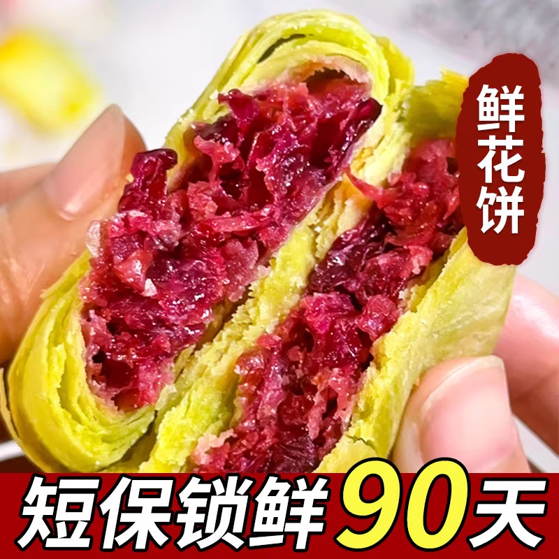 云南鲜花饼网红零食小吃心早餐酥皮糕点小吃食品面包玫瑰花饼野餐