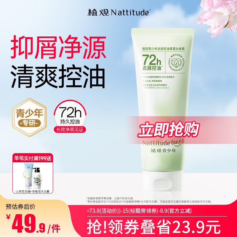 植观青少年去屑控油青蒿头皮素儿童专用洗发水膏男女孩青春期学生