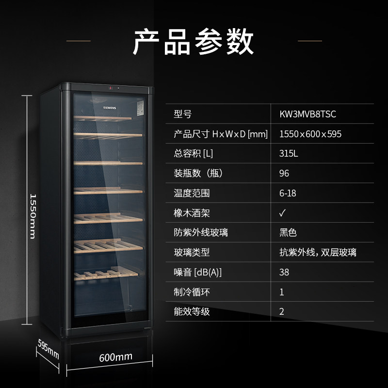 西门子96支装红酒柜专业冷藏智能恒温橡木酒架葡萄酒柜B8TSC