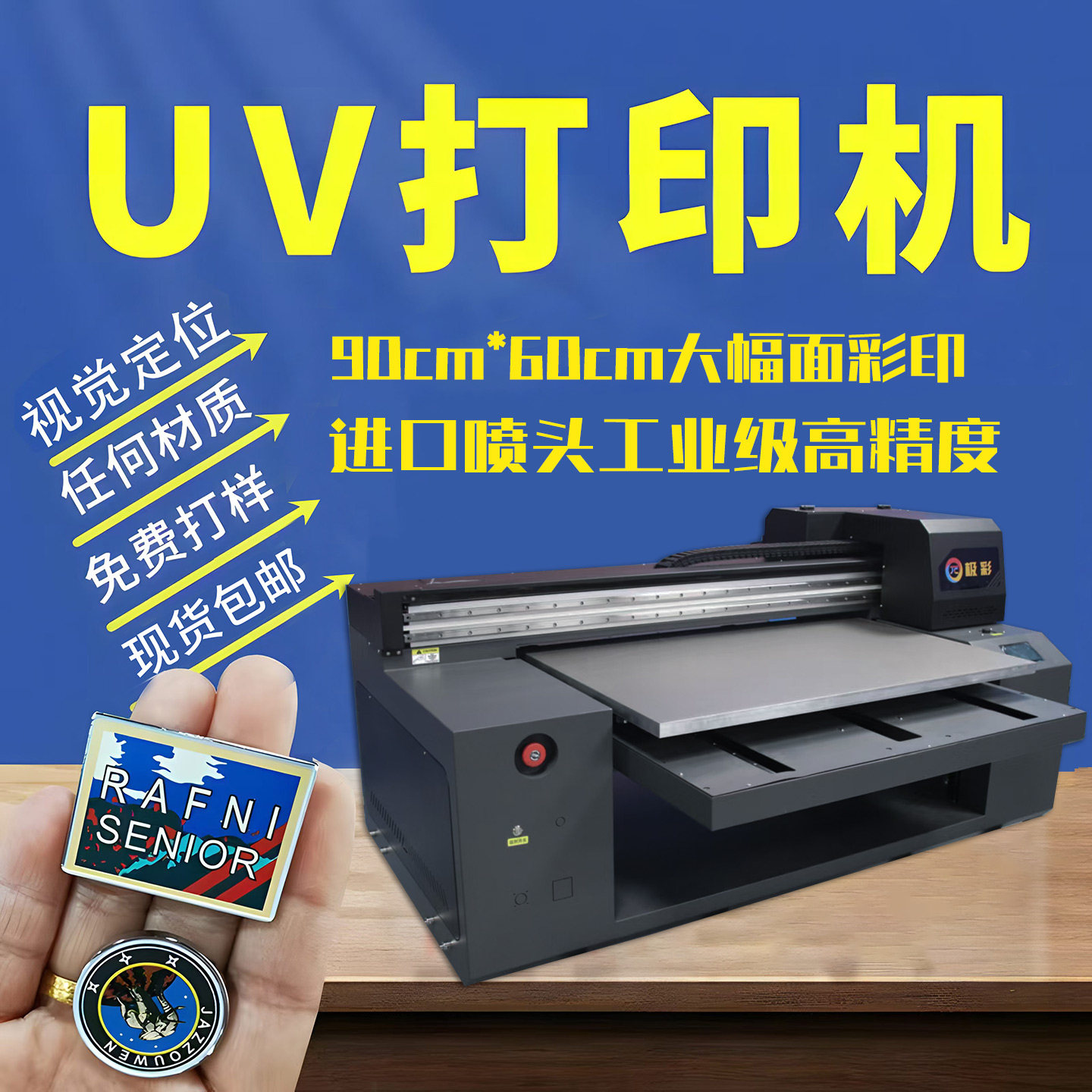9060uv打印机小型水晶标贴纸皮革亚克力kt板木石材广告服装印花机