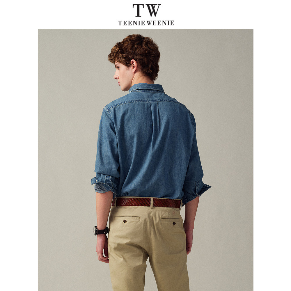 Teenie Weenie小熊男装复古韩系水洗柔软牛仔长袖衬衫2026年春