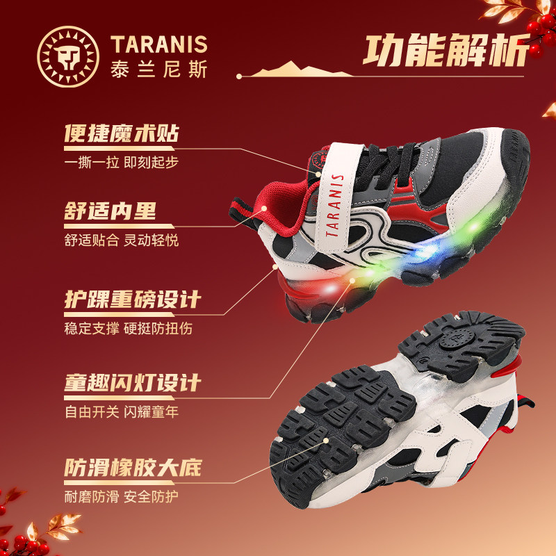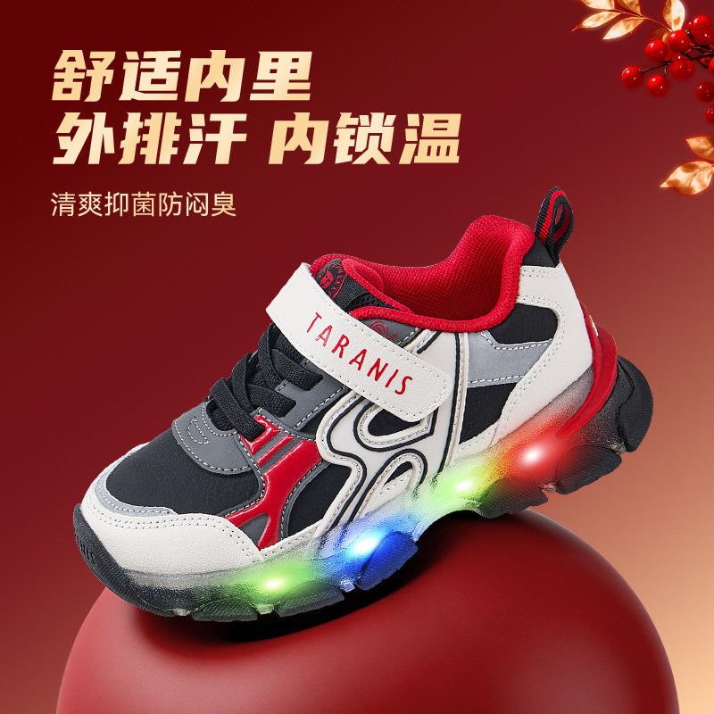 泰兰尼斯新年闪灯鞋儿童鞋子运动鞋男女童缓震宝宝防滑休闲跑步鞋