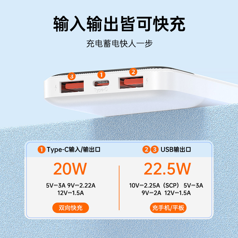 【3C认证充电宝】品胜自带插头20000毫安大容量10000充电器二合一电霸标识自带线适用苹果17小米移动电源