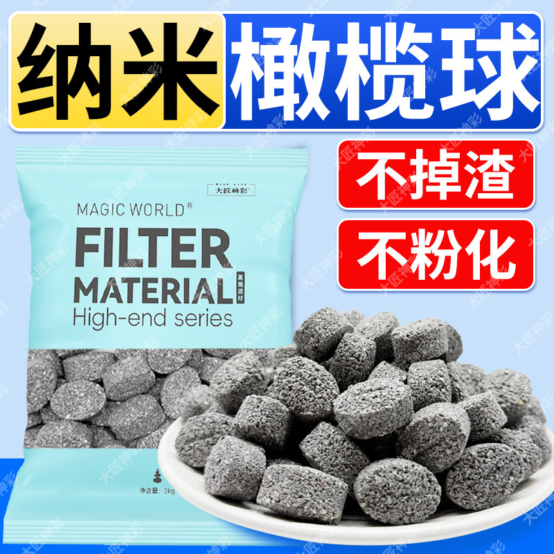 鱼缸原矿滤材橄榄球鱼池过滤材料细菌屋石英球净水过滤石水质