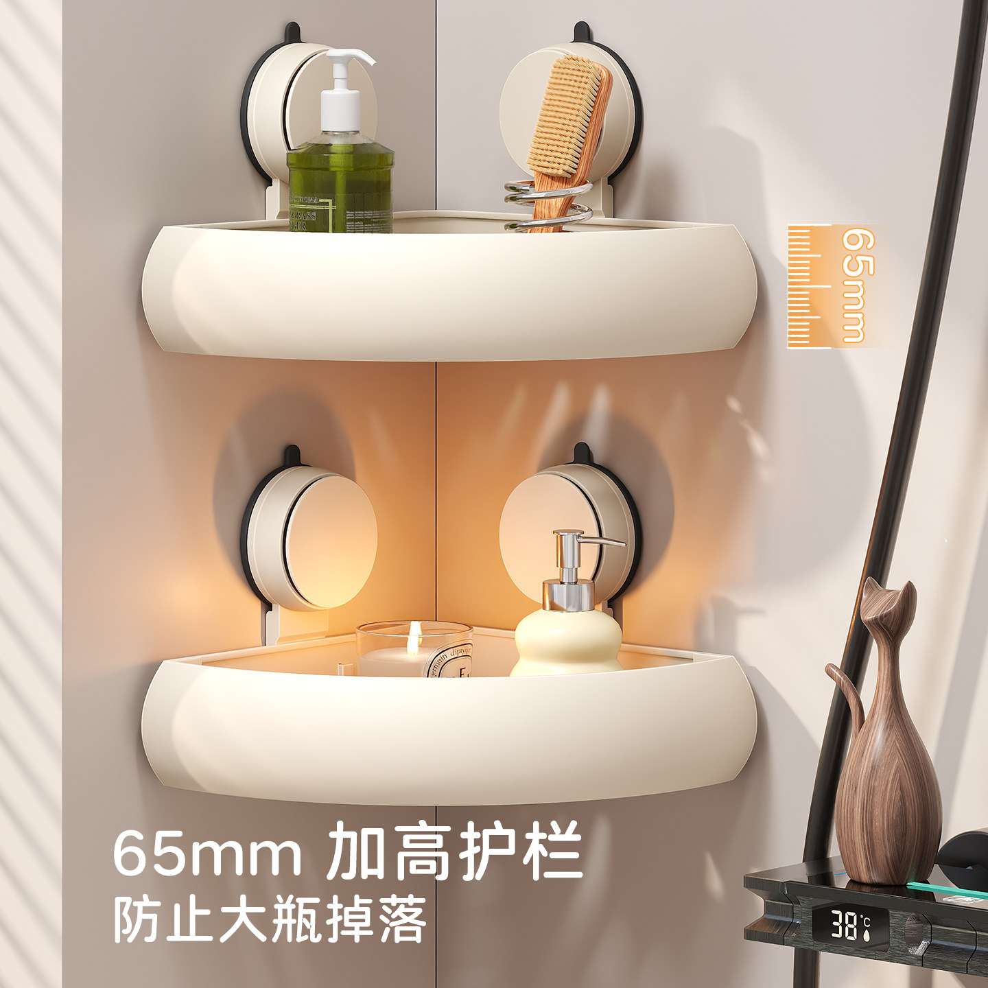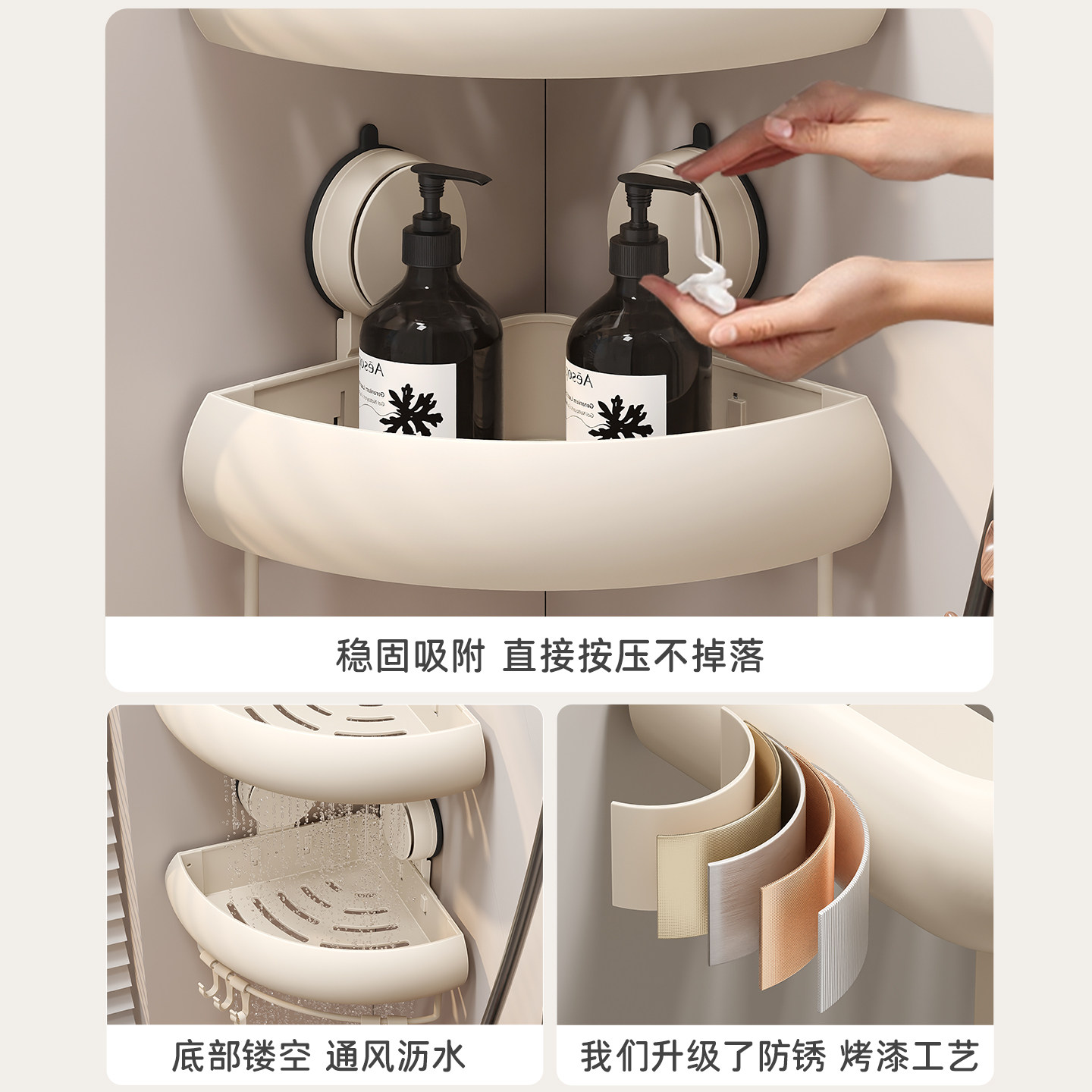 吸盘卫生间置物架免打孔浴室三角篮壁挂架洗手间洗漱台墙角收纳架